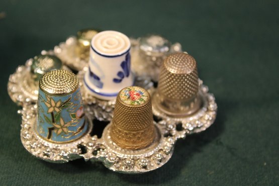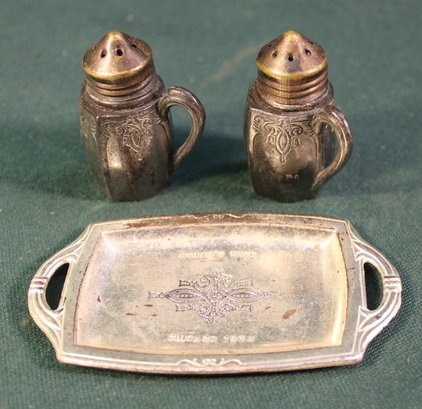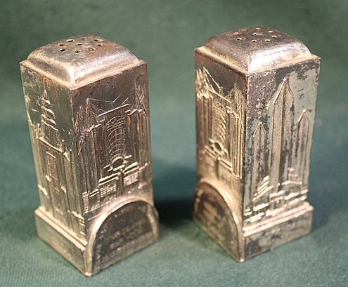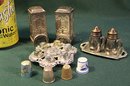 2 Pair 1934 Chicago World Fair Salt & Pepper Shakers, Tray & Thimble Holder With 4 Thimbles(174)