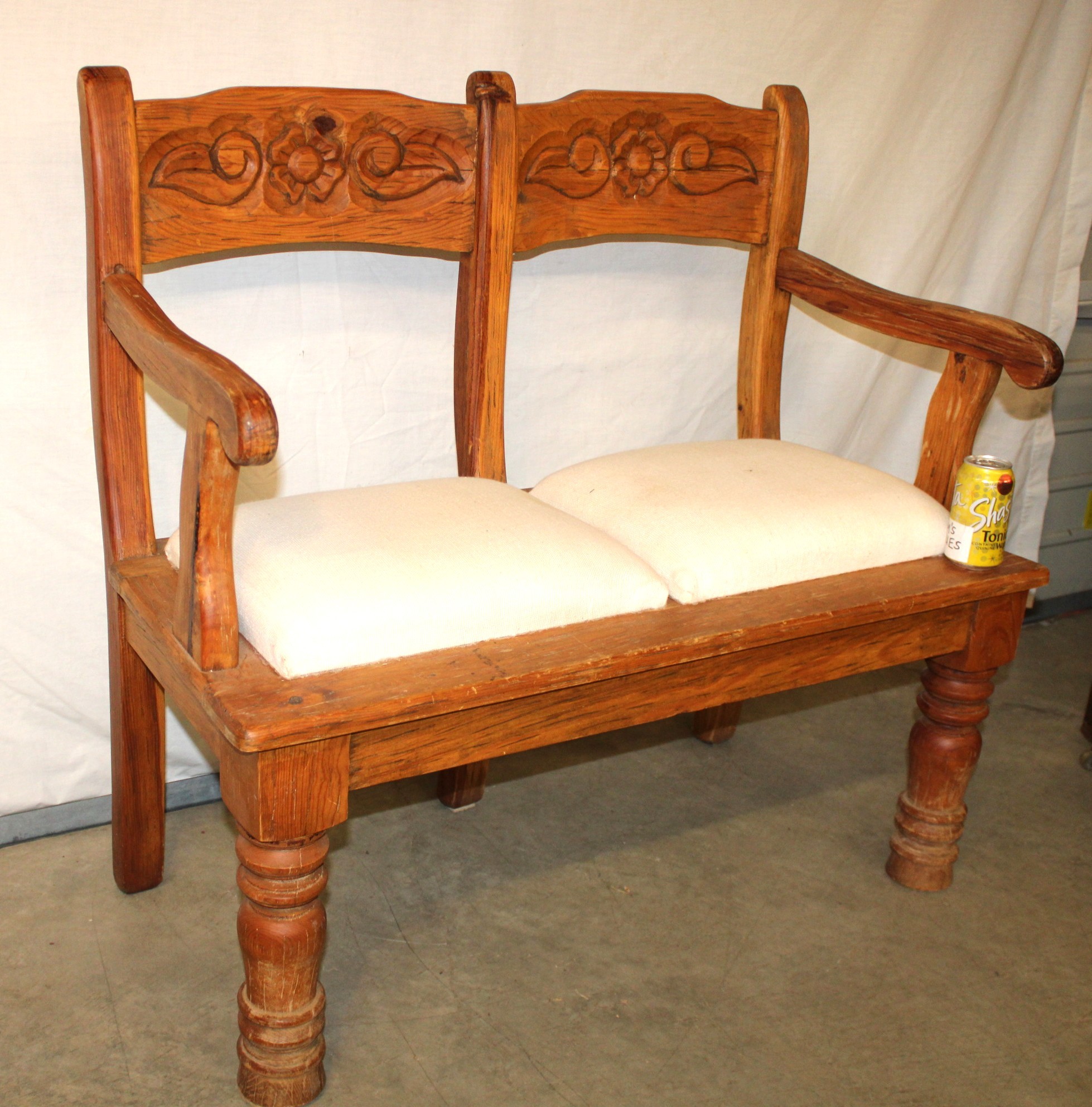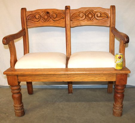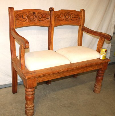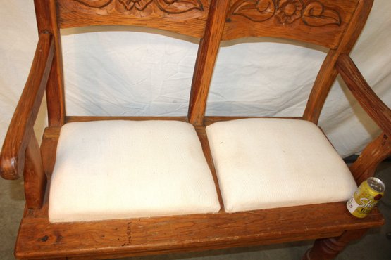 2 Seater Bench W/Arms & Carved Back, Upholstored Seas 40x19x36"H (236)
