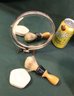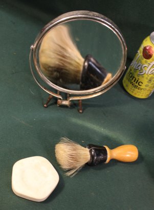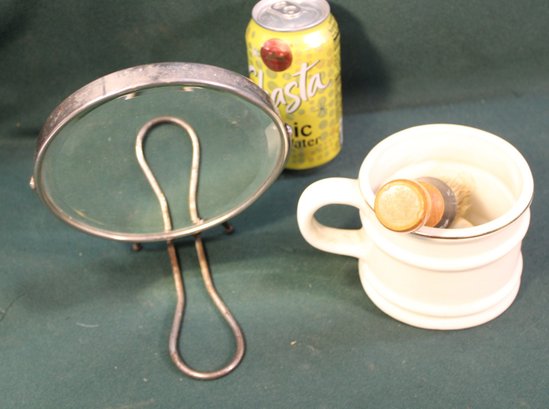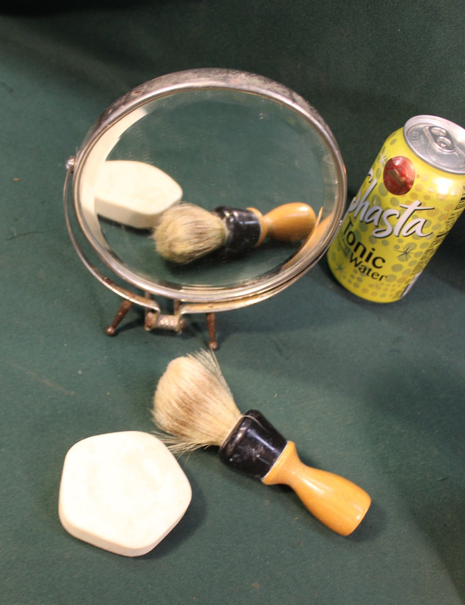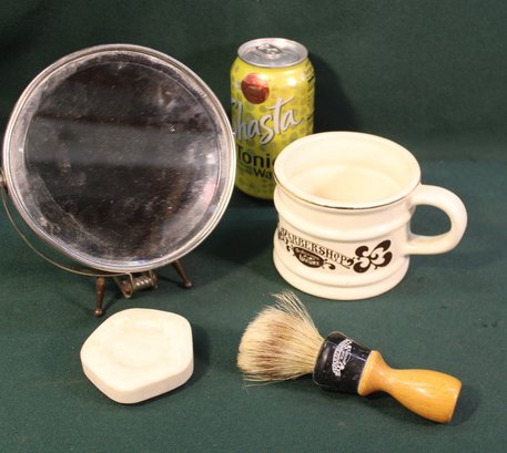 2 Sided 6"D Swivel Magnified & Regular Beveled Mirror W/Soap, Barber Shop Cup & Shaving Brush (31)