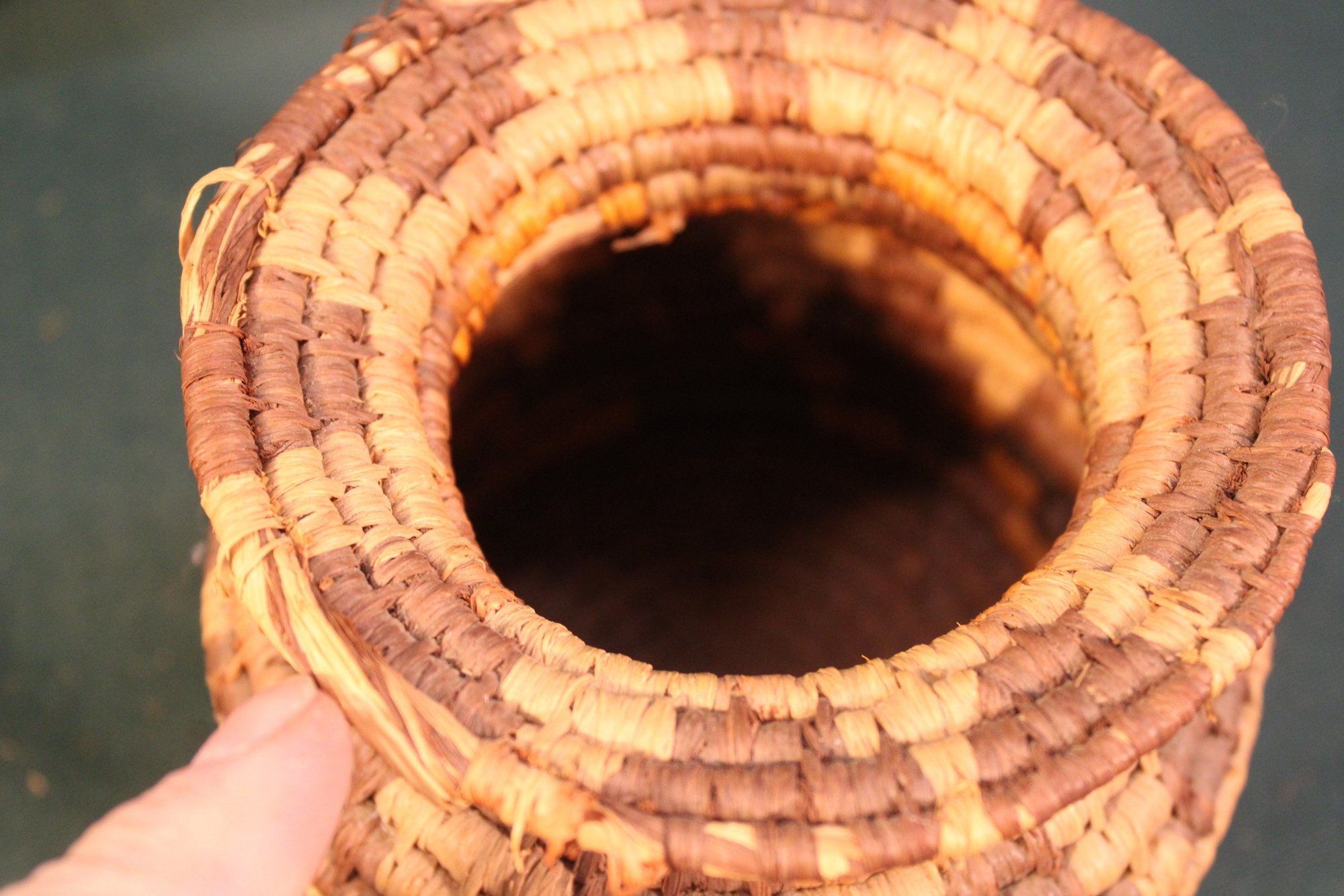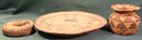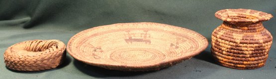 2 Vintage Woven Ethnic Baskets & Woven Round Loop, 12"D Tray & 4"H Basket (208)