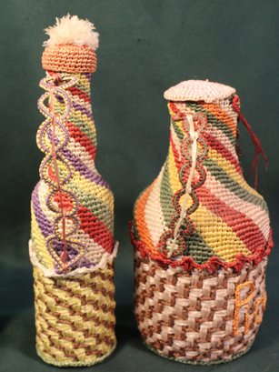 2 Woven Covered Bottles & Ethnic Woven Wall Hanging, 28x37" (330)
