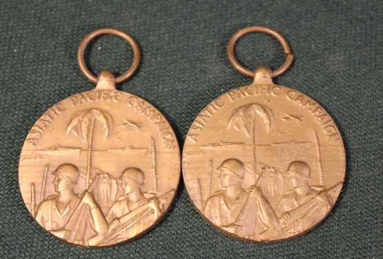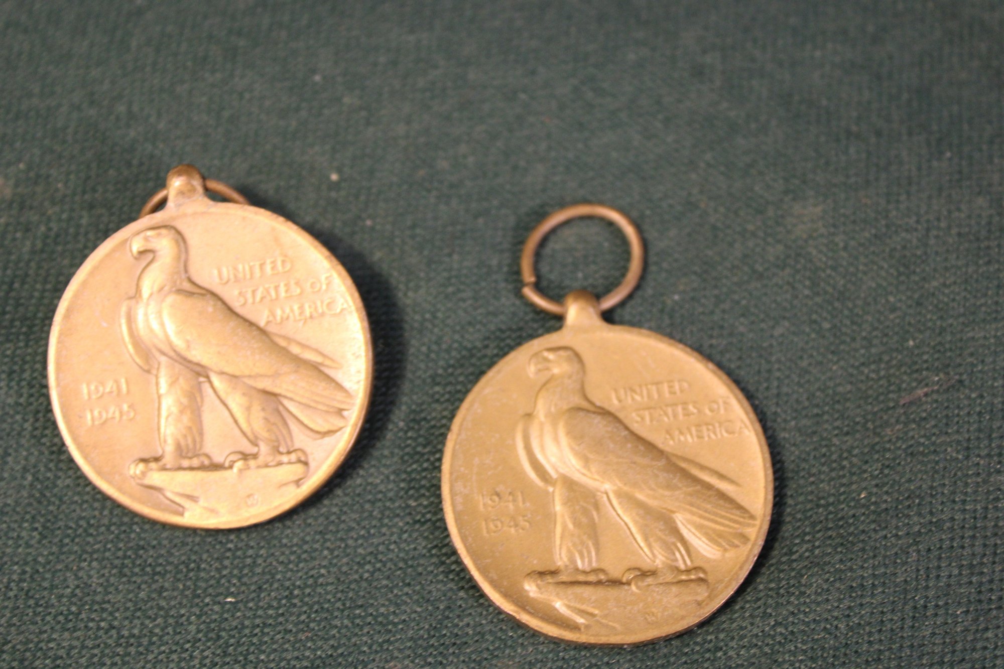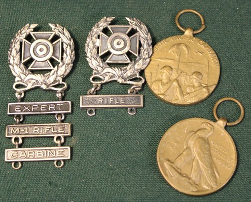 2 WWII Atlantic Pacific Campaign 1941-1945 Medals & 2 Marksman Medals (270)