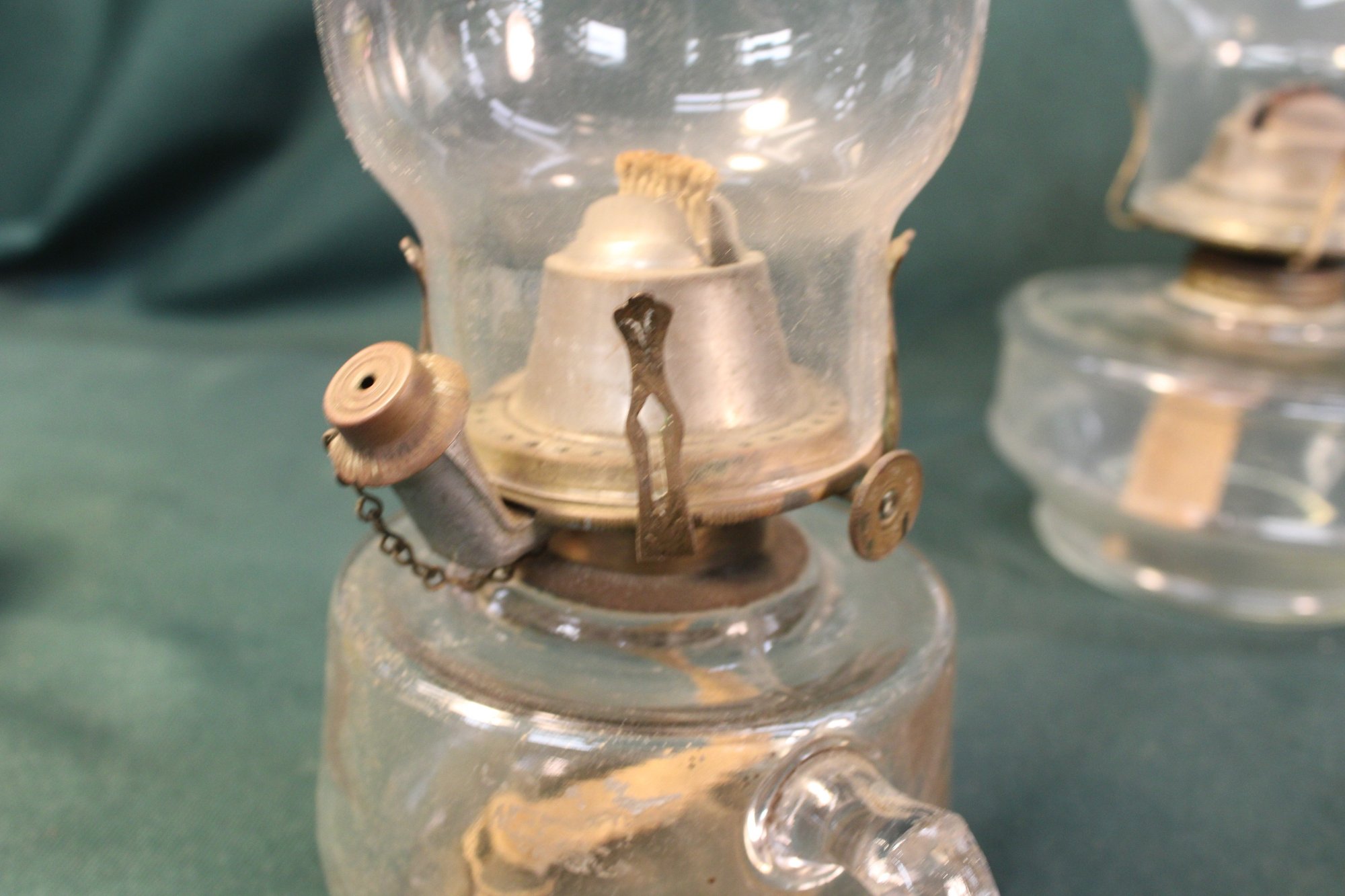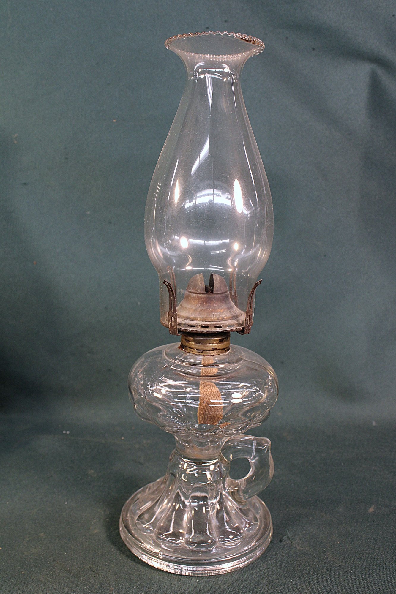 3 Antique Oil Burning Lamps - 2 Are Finger Lamps, One Is A Bracket Lamp (375)