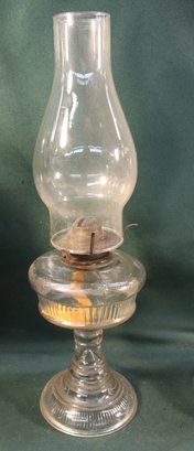 3 Antique Oil Lamps W/Chimneys And Burners, 17, 19 & 19"H (391)
