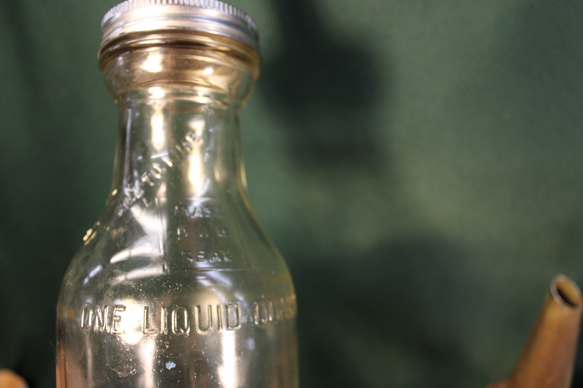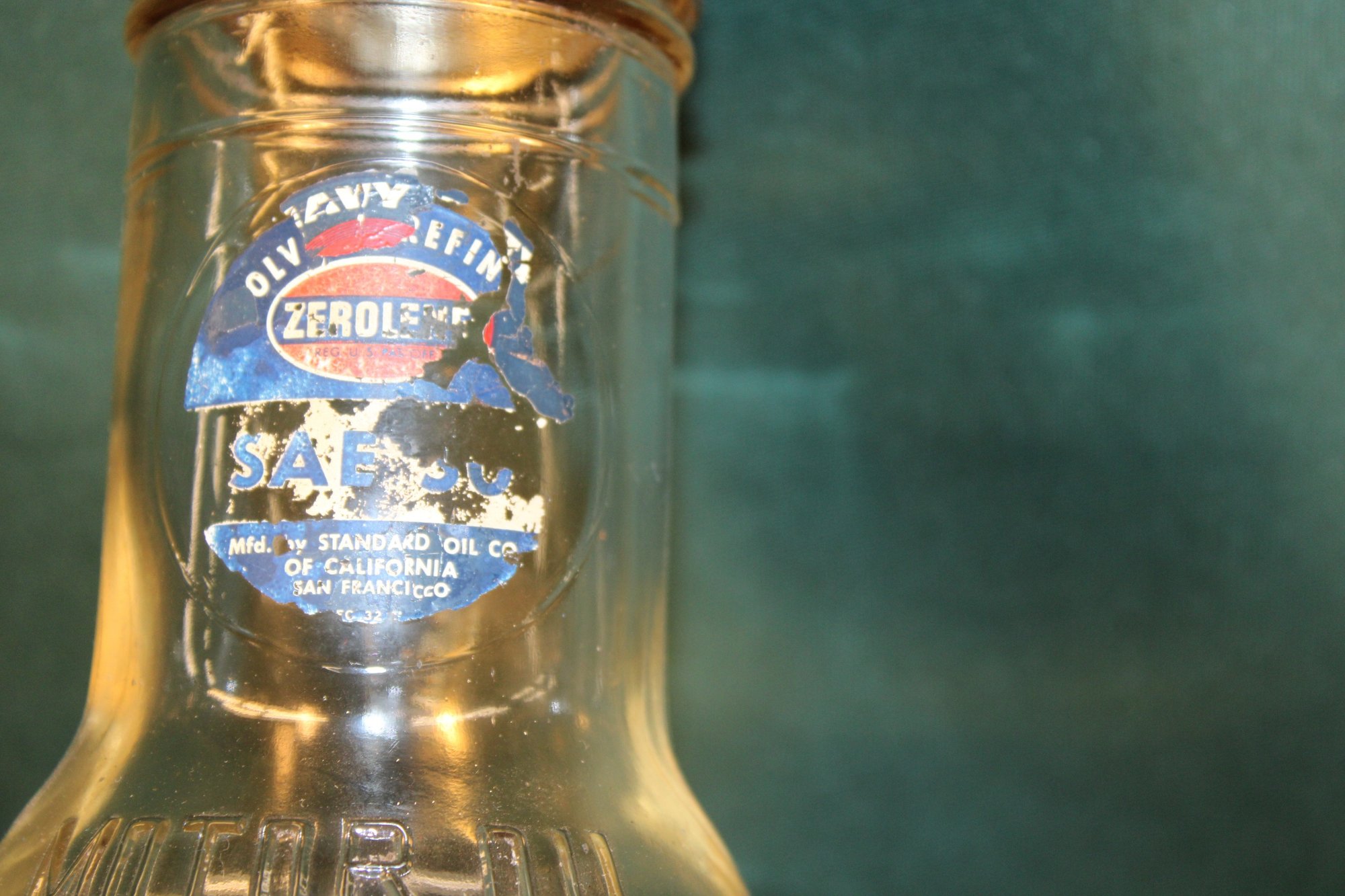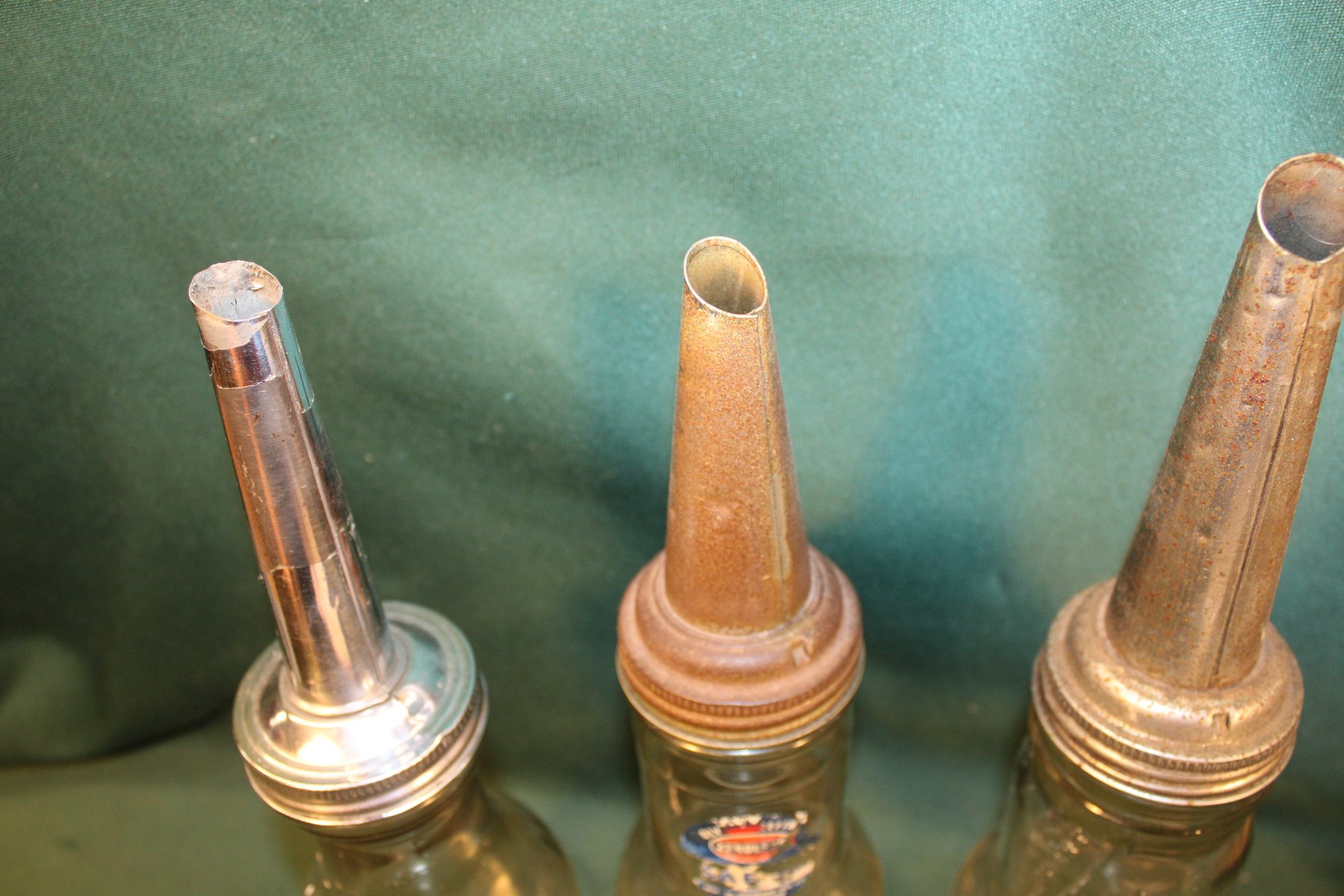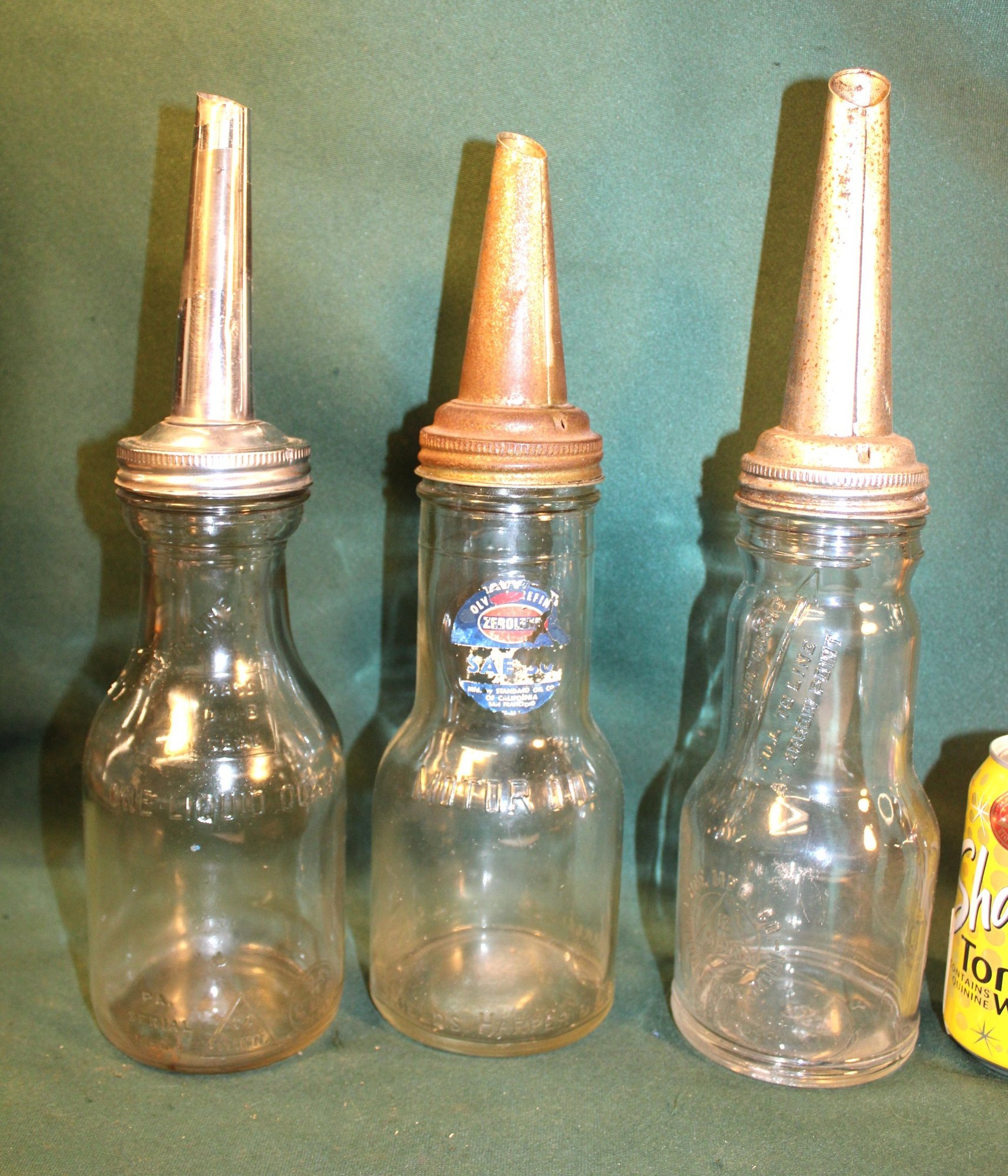 3 Motor Oil Quart Glass Bottles W/spouts - BOE Mfg Co, Zerolene, Mass Seal, 9"H (261)
