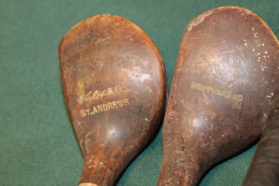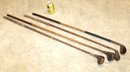 4 Antique Wood Handled Golf Clubs, Wilson Baseball Glove & Italian Hat (161)