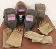 4 Welding Helmets, 2 Auto Darkening, 1 Antique, 1 Reg, & 3 Pair Welder's Gloves (312)