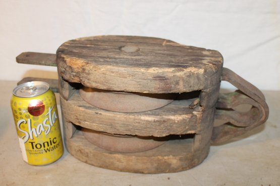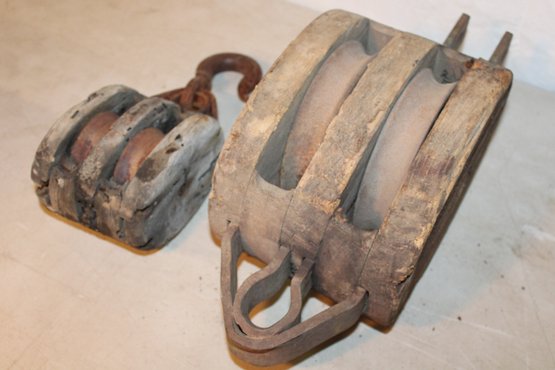 5 Antique Wooden Pulleys Of Varying Sizes (59)