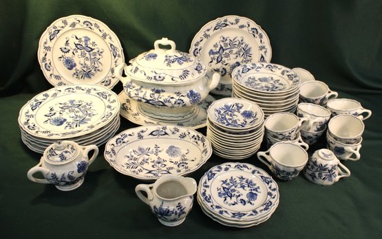 Tureen, 11 Saucers, 14 Cups, 8 Dinner Plates (one chip in plate), 3 @5" plates, 11@7" Bowls, 2@5" Bowls, Cream & Sugar Bowl w/Lid, Vegetable bowl