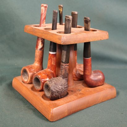6 Tobacco Pipes In Wood Holder (164)