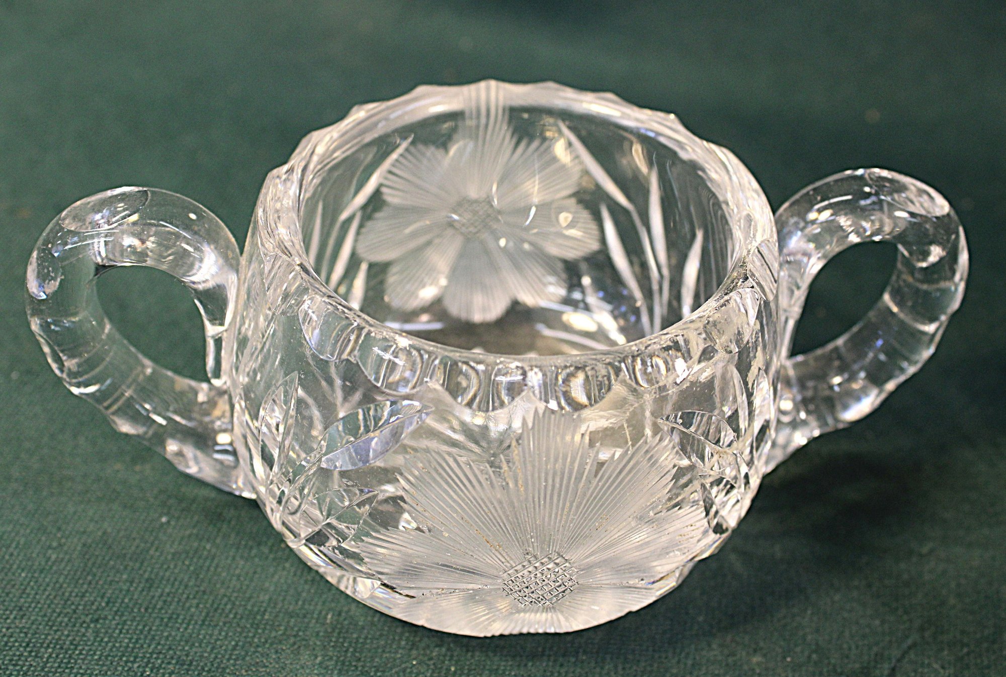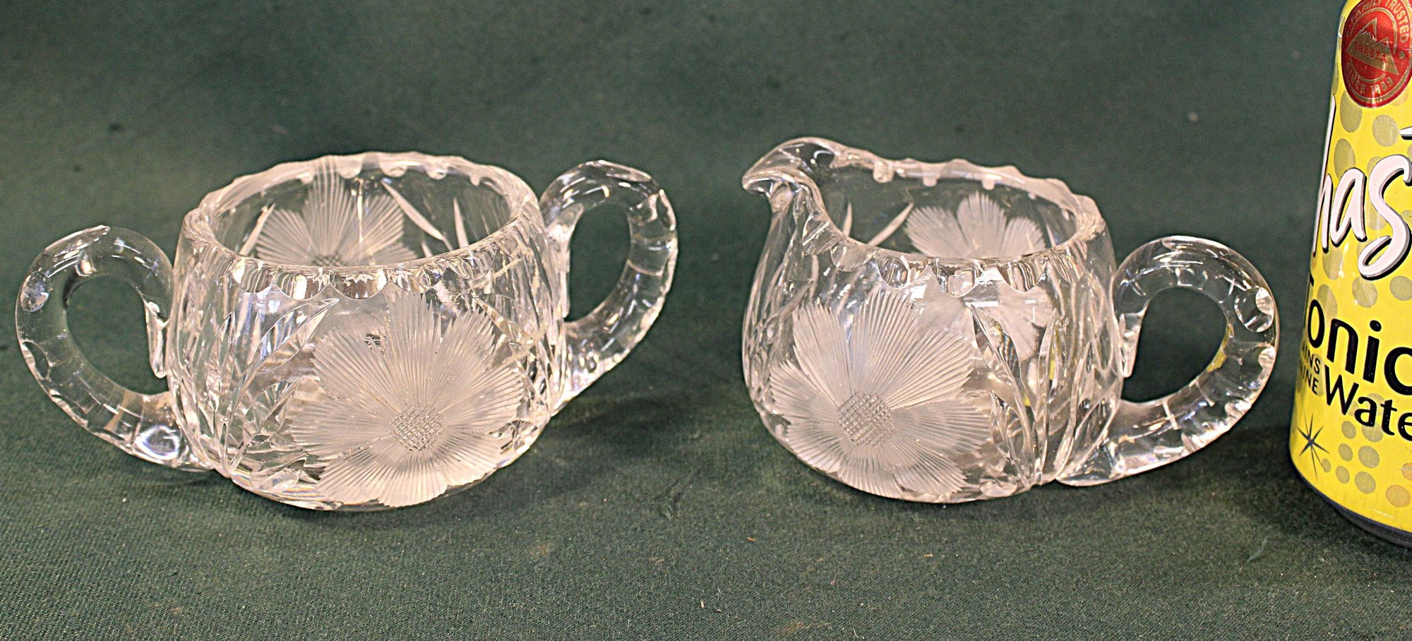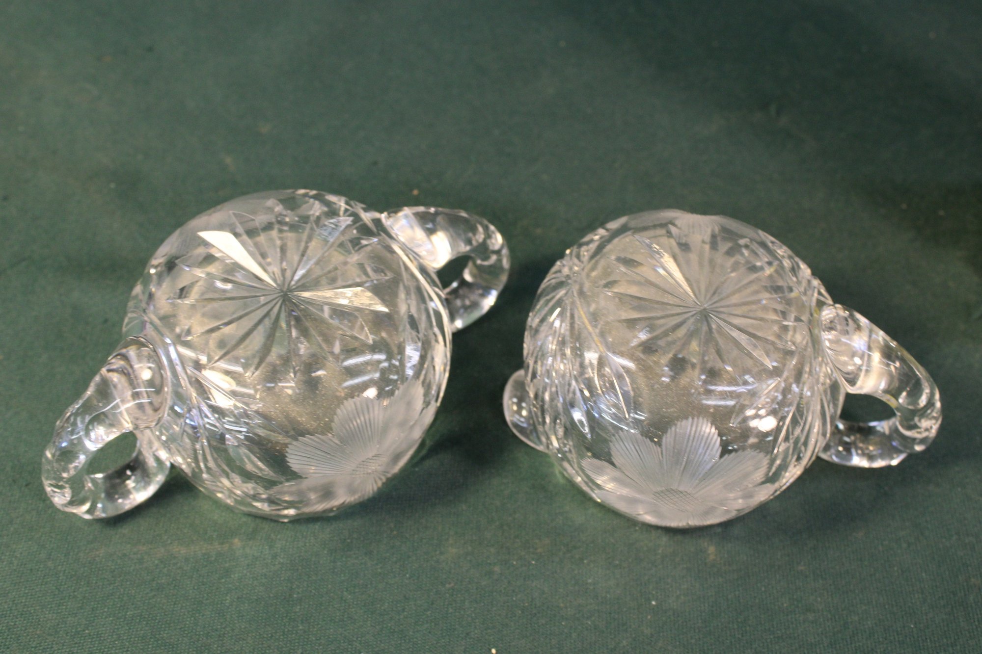 Pair Of Antique Etched And Cut Glass Sugar & Creamer, 2.5H (24)
