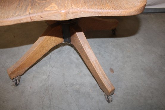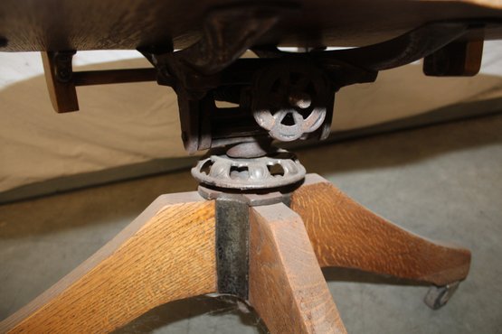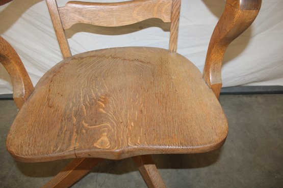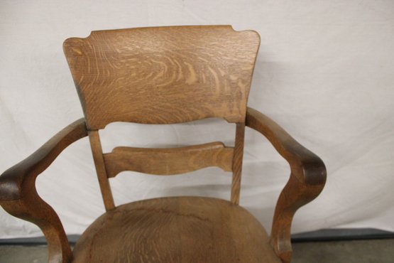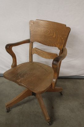 Antique 1900s Quartered Oak Swivel/Tilt Office Arm Chair On Castors (253)