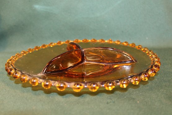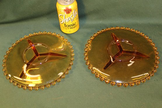 Antique 2 @ 9"D Amber Glass Divided Candlewick Plates (205)