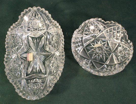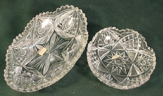 Antique 2 Clear Cut Glass Bowls Each Signed Libby (252)