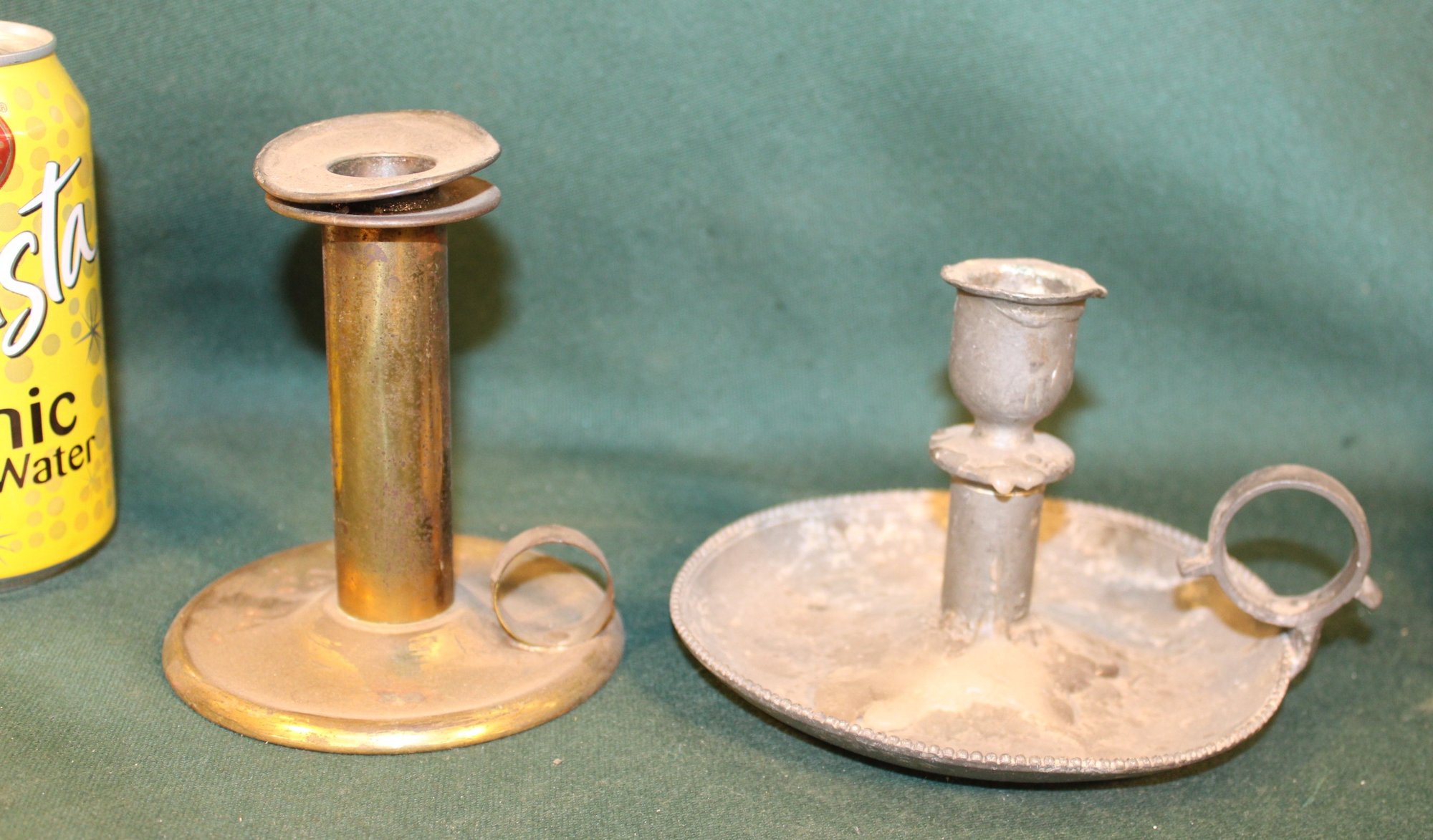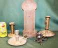 Antique 5 Metal Candleholders - Tin, Brass, Pewter (342)