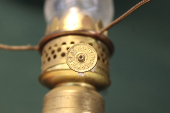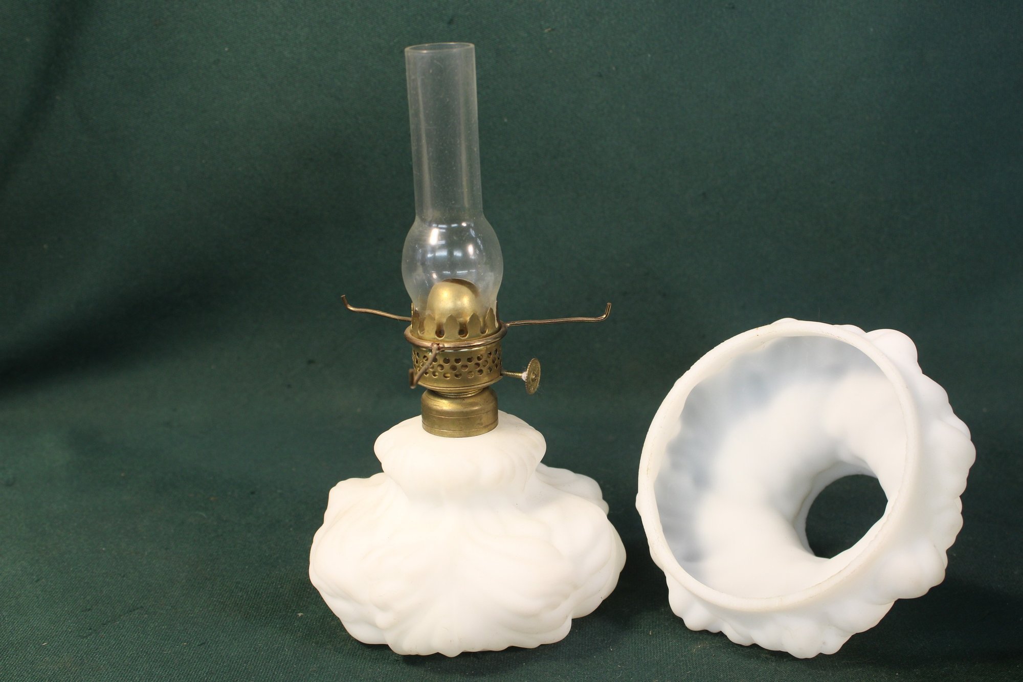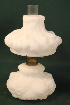 Antique All Original Beautiful White Satin Glass Miniature Oil Lamp, 8H (20)