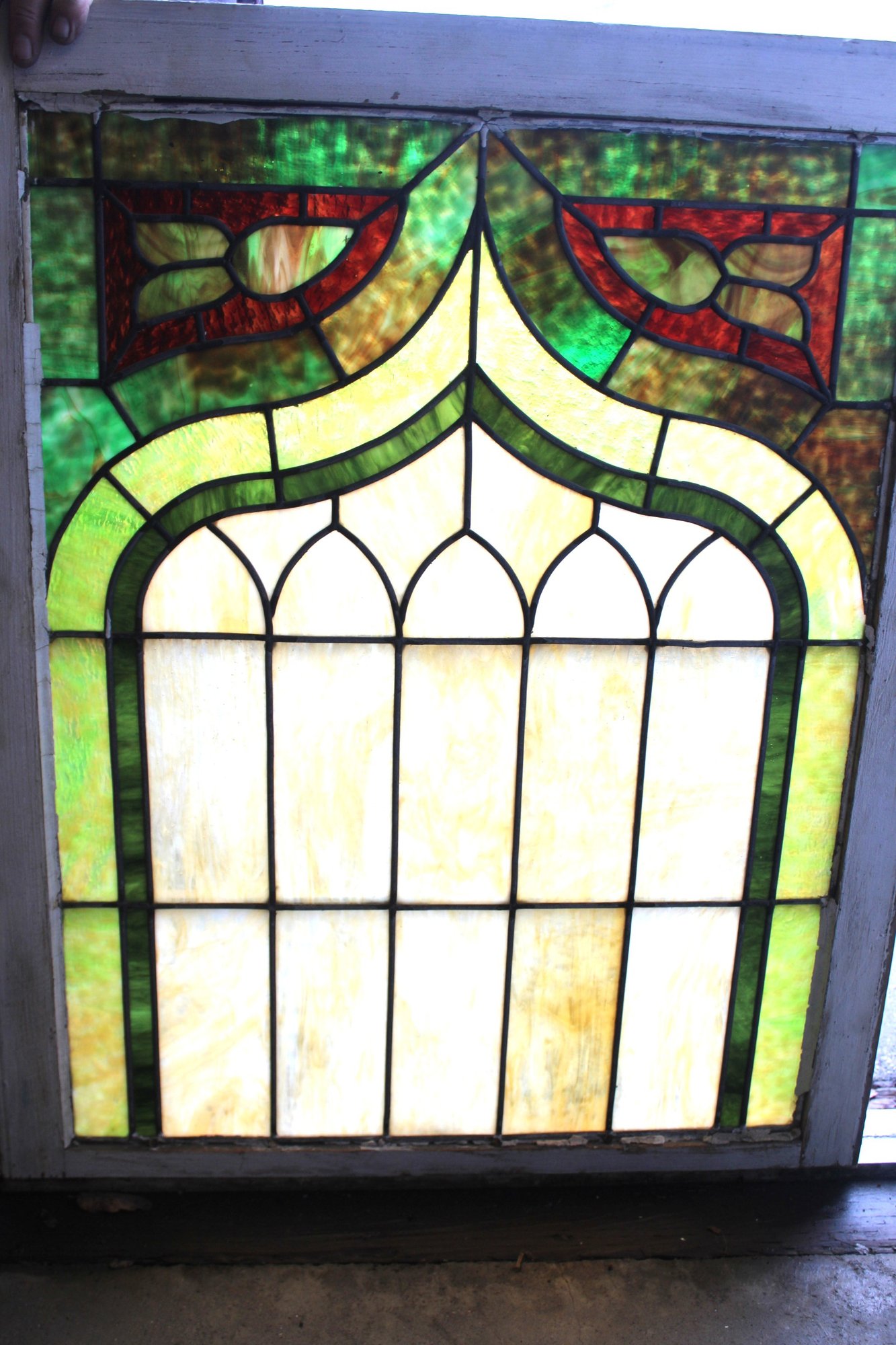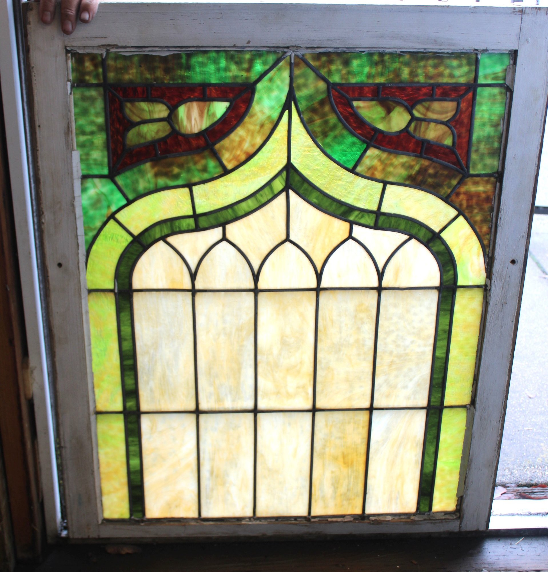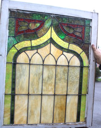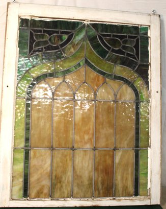 Antique Beautiful Framed Leaded Stained Glass Window, 28x35"H (279)