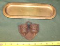 Antique Bradley & Hubbard 11" Brass Tray & Bradley & Hubbard Iron Match Holder, Meriden, Ct. #1800 (323)
