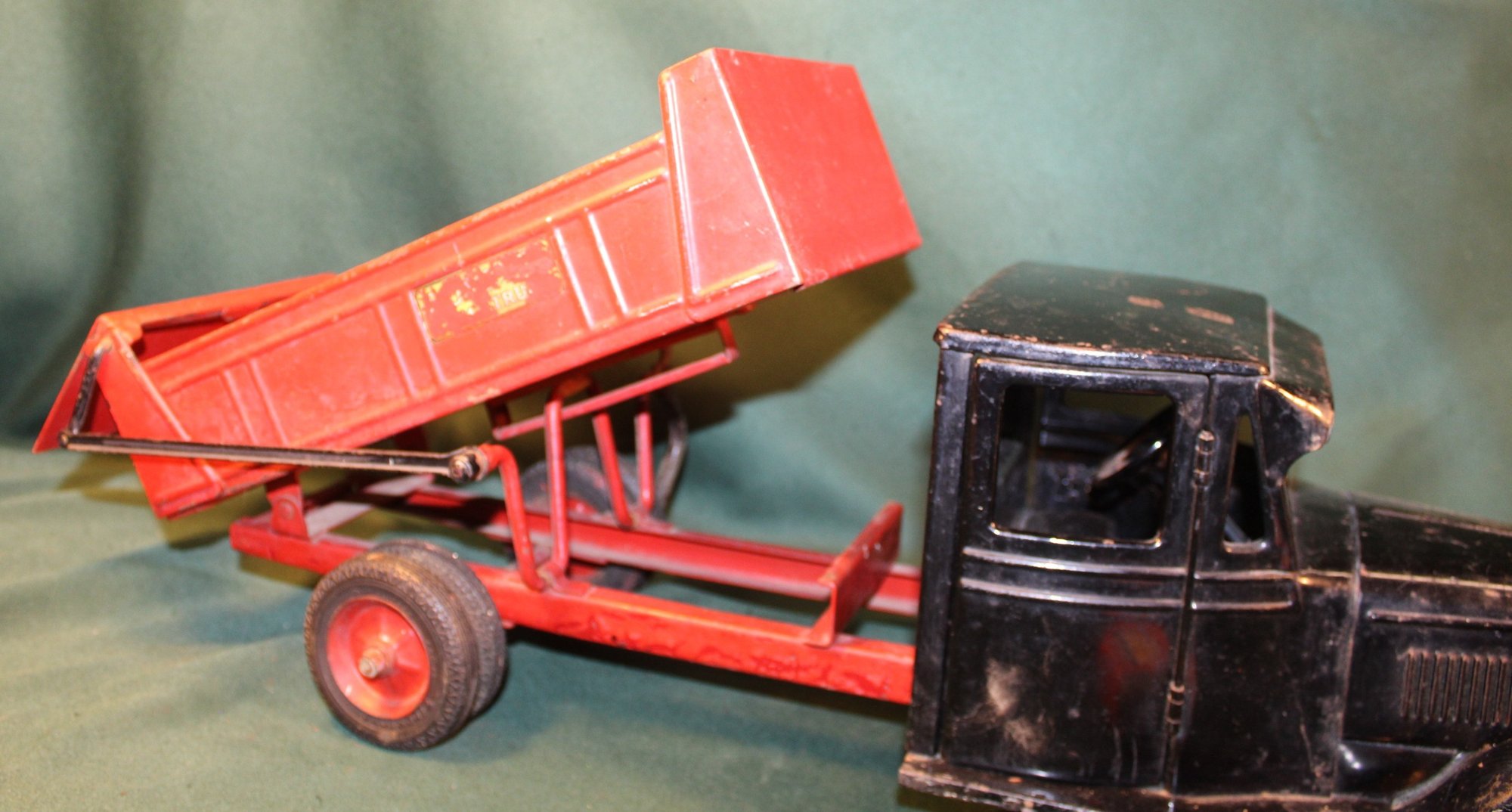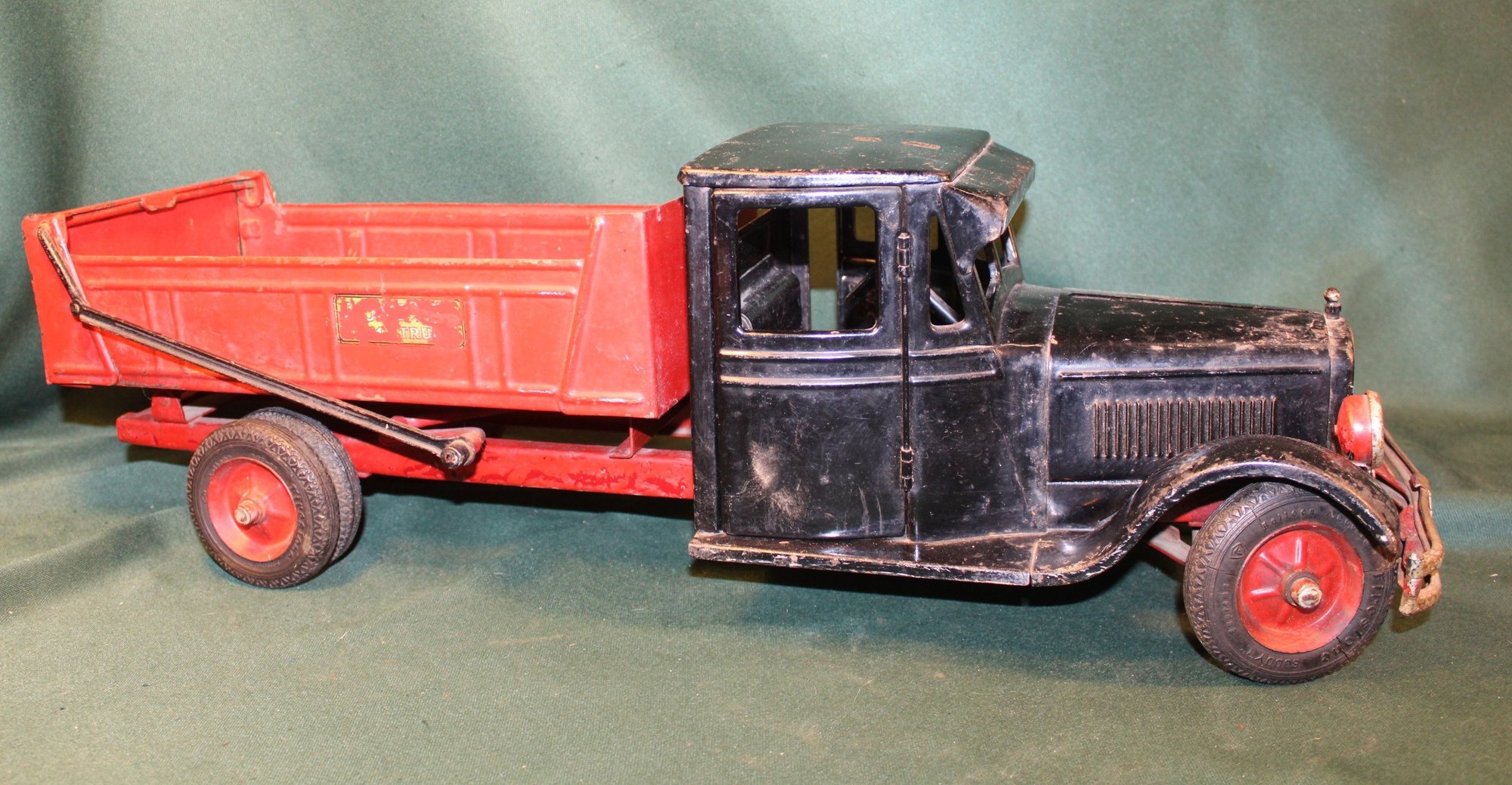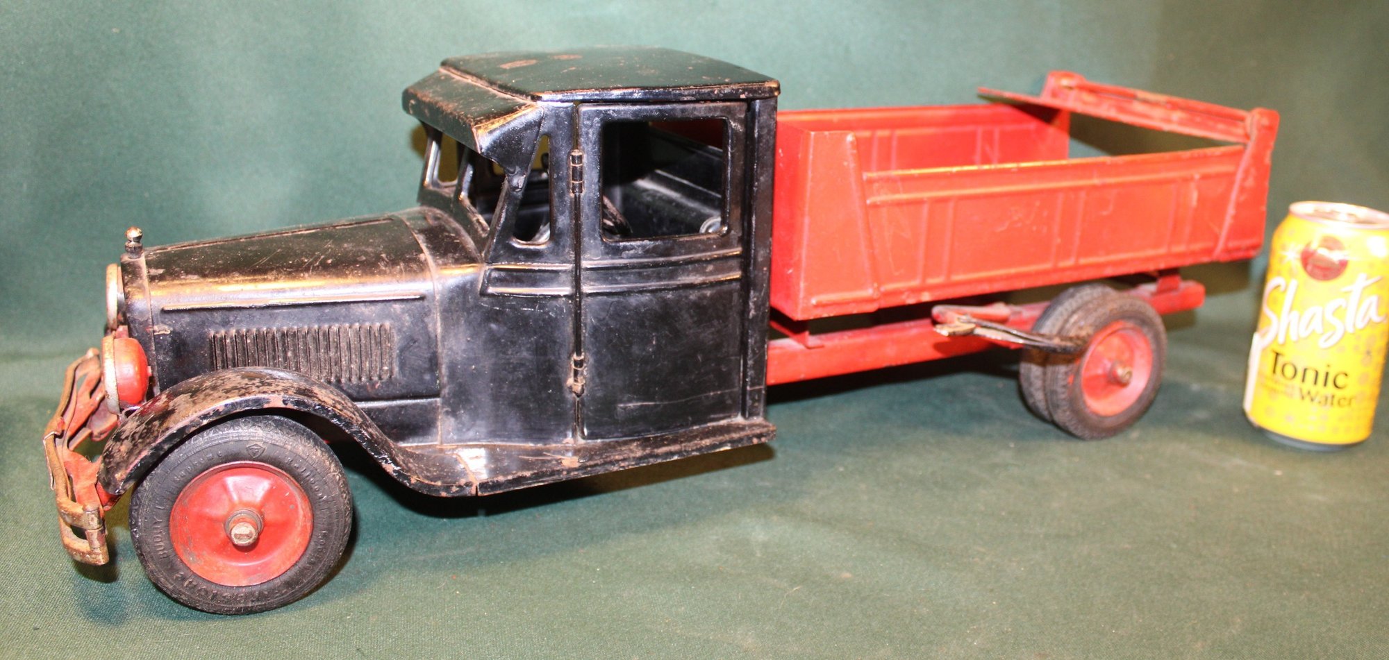 Antique Buddy L Metal Toy Dump Truck, Steering Wheel Moves Tires, 24" (252)