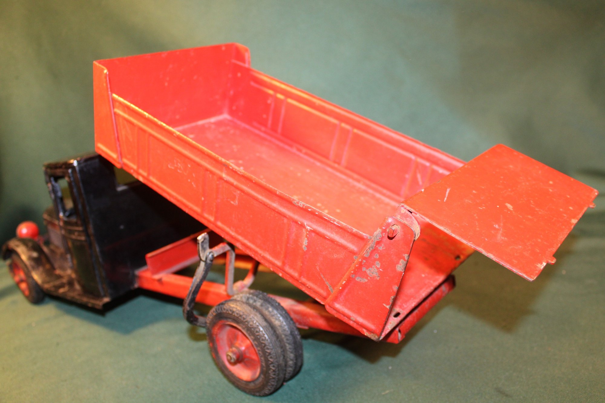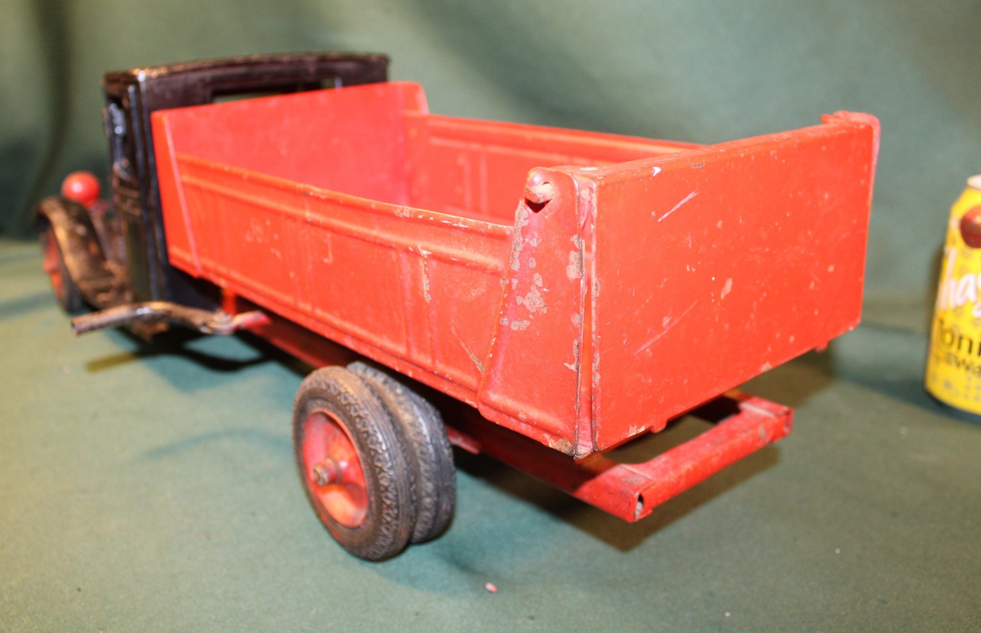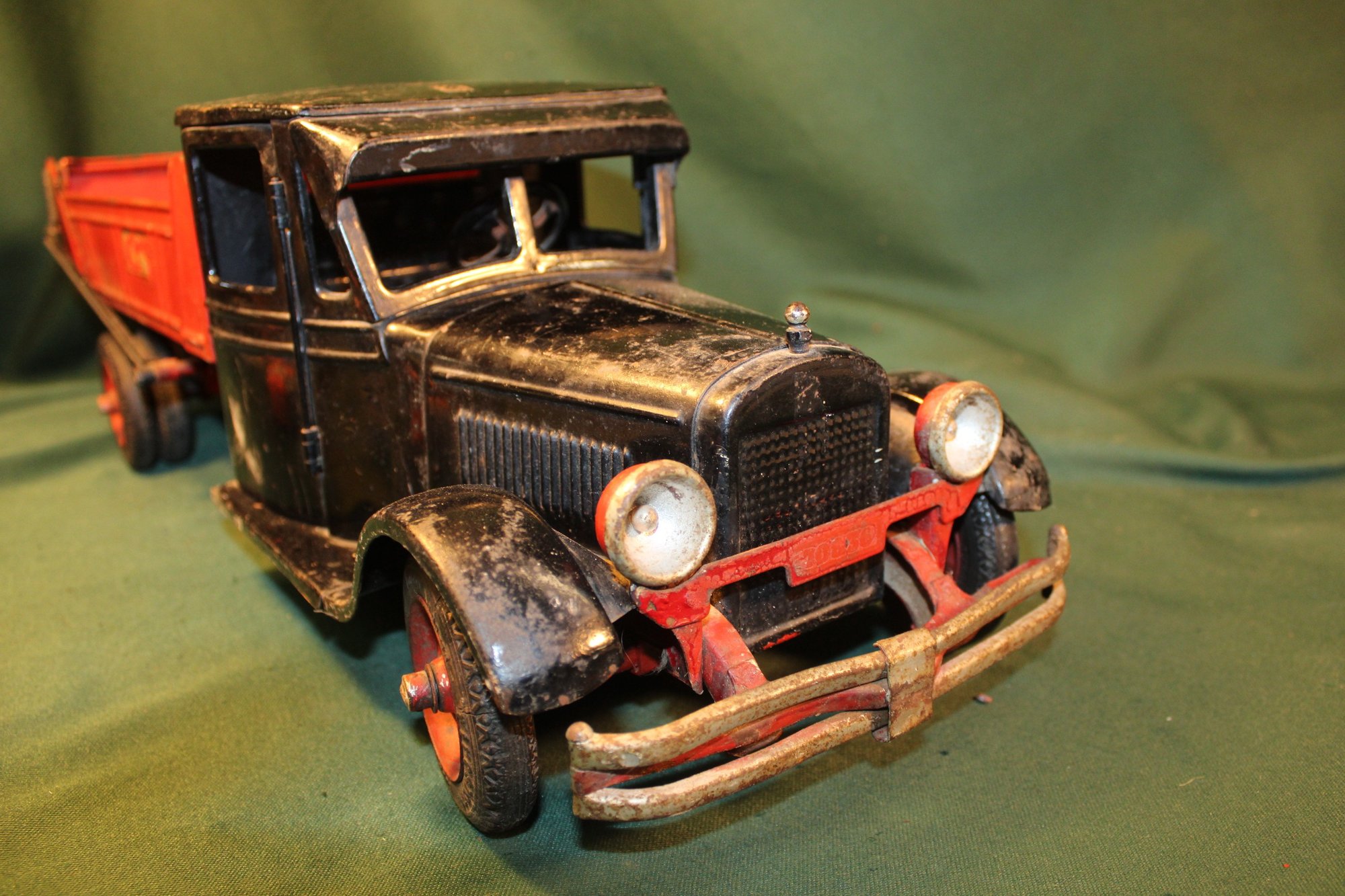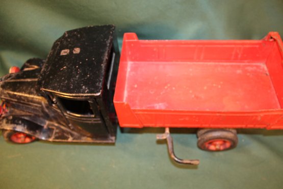 Antique Buddy L Metal Toy Dump Truck, Steering Wheel Moves Tires, 24" (252)
