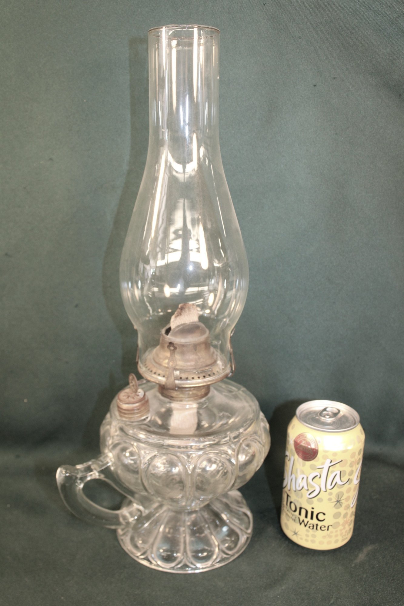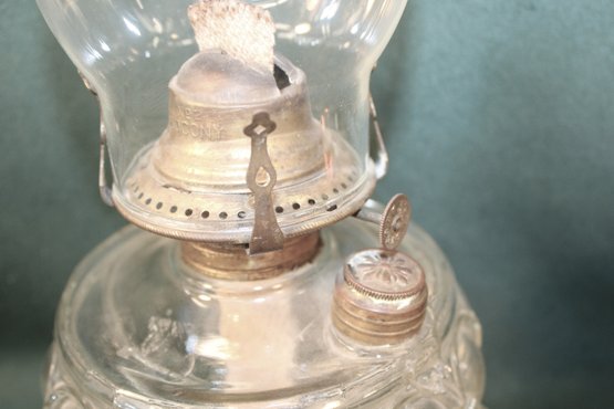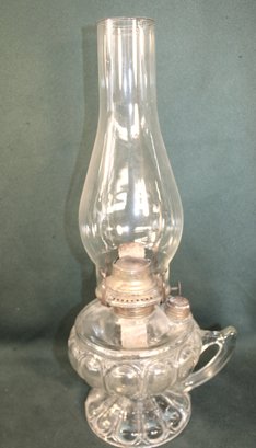 Antique Complete Clear Pattern Glass Oil Finger Lamp, 17"H (232)