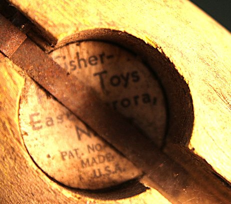 Antique Fisher Price Wooden Duck Pull Toy, Missing Front Wheels And String, 12' LONG (47)