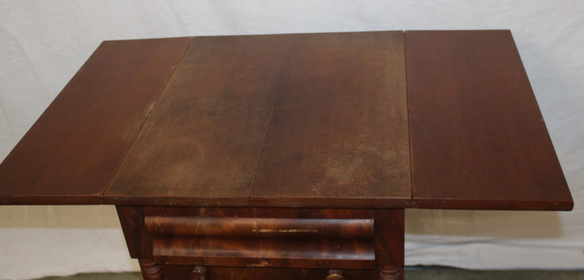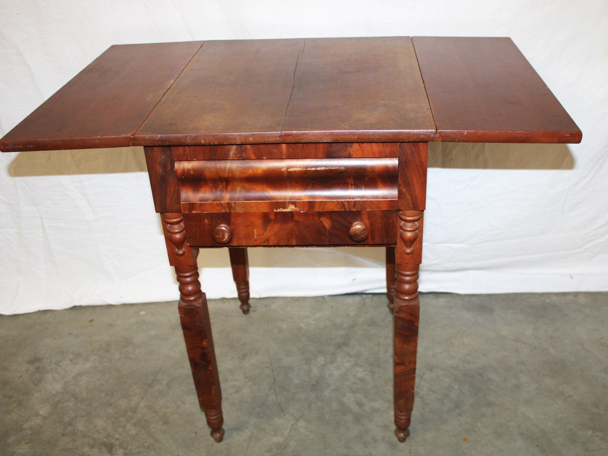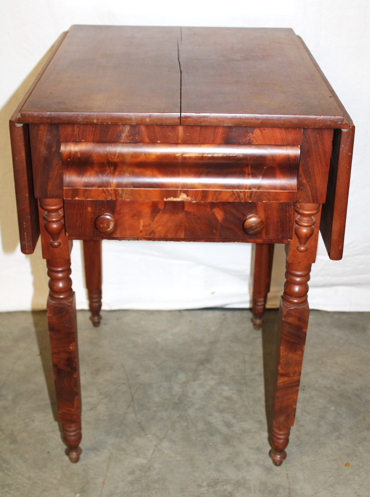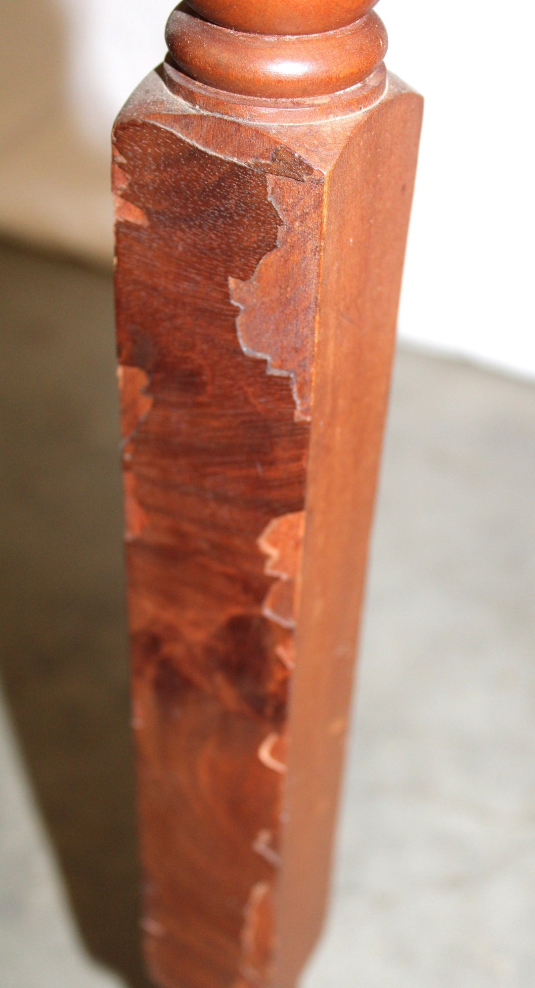 Some veneer damage on leg as shown.