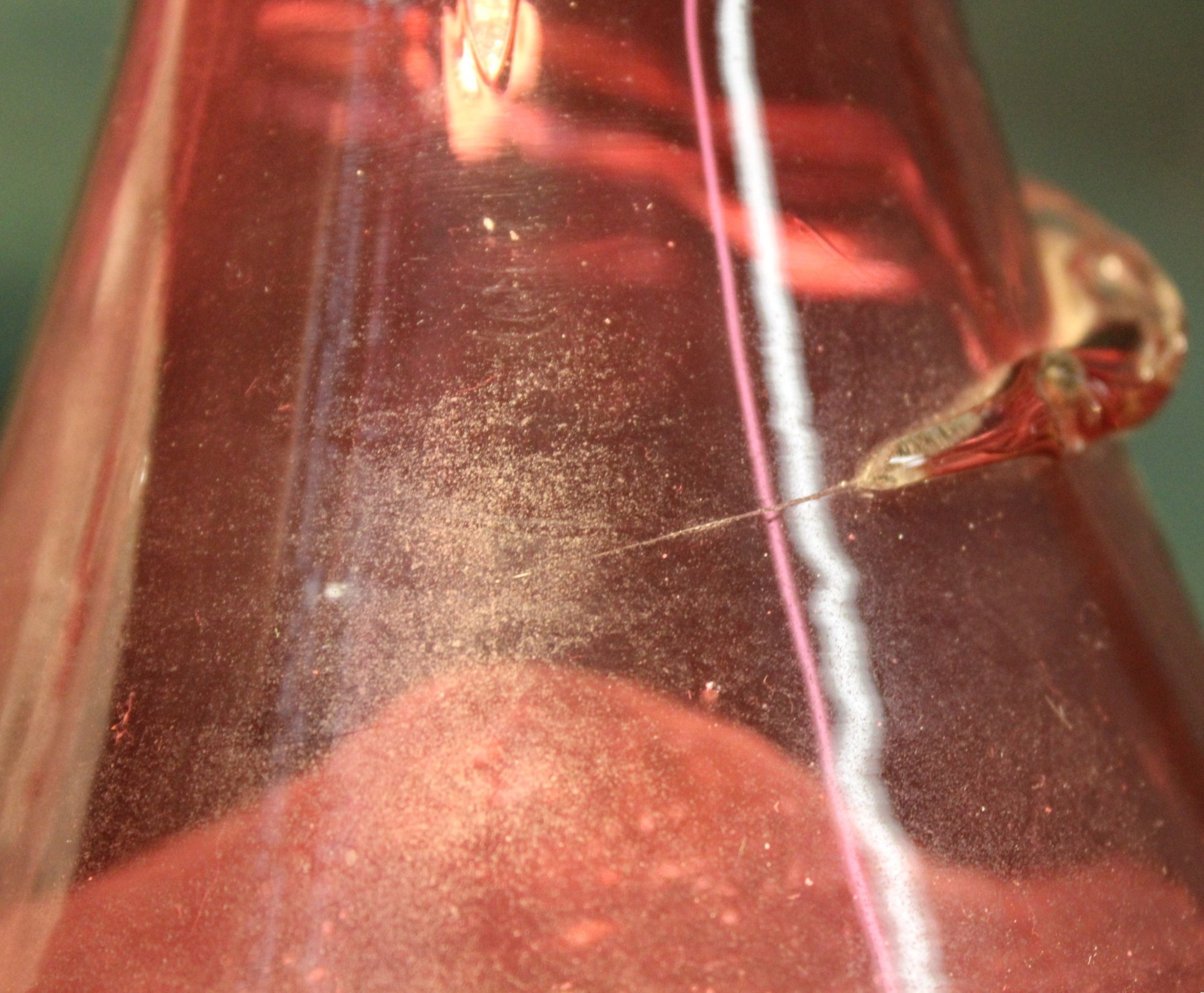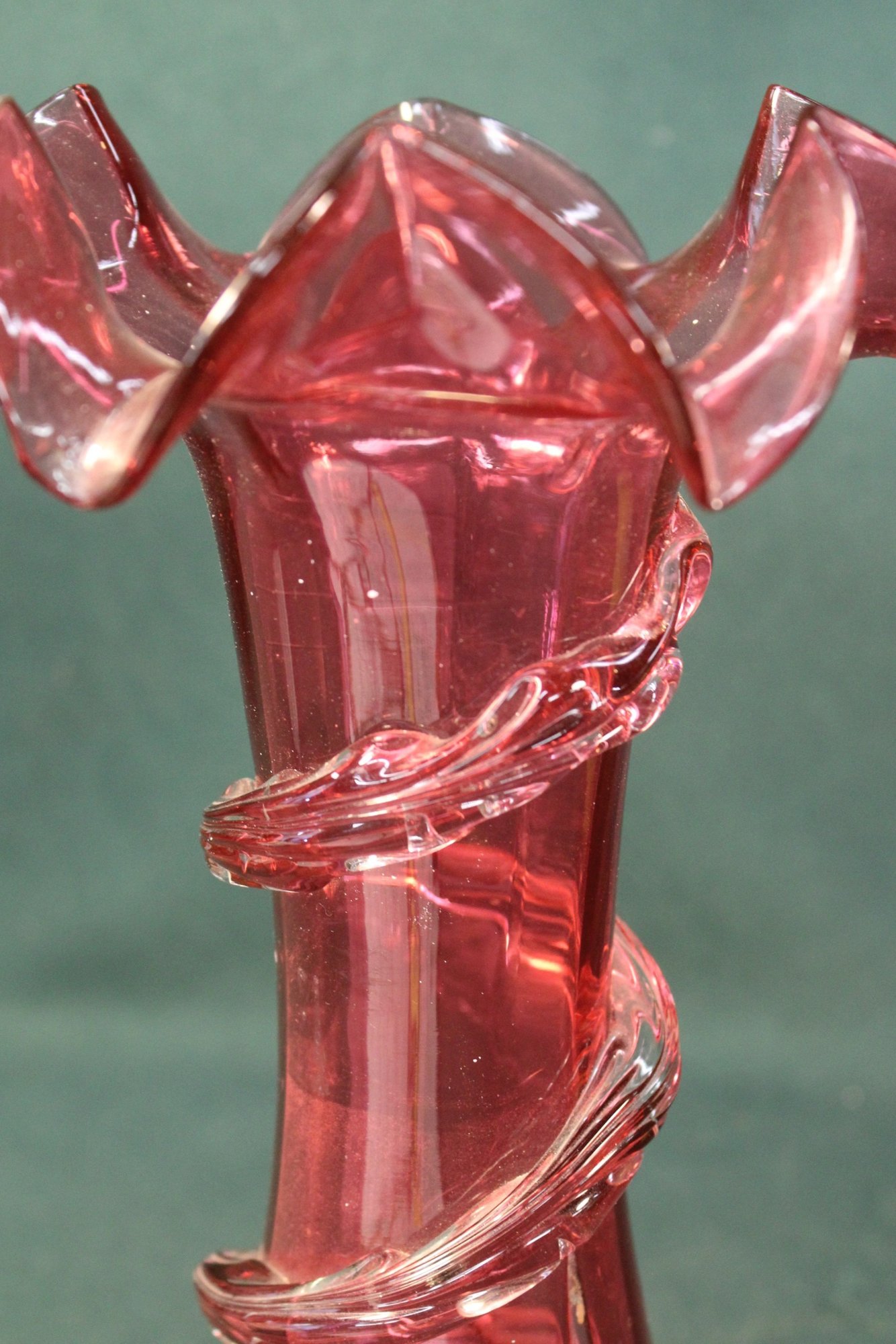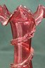 Antique Hand Blown Ruffled Edge Cranberry Glass Vase With Applied Thread , 9" H (18)