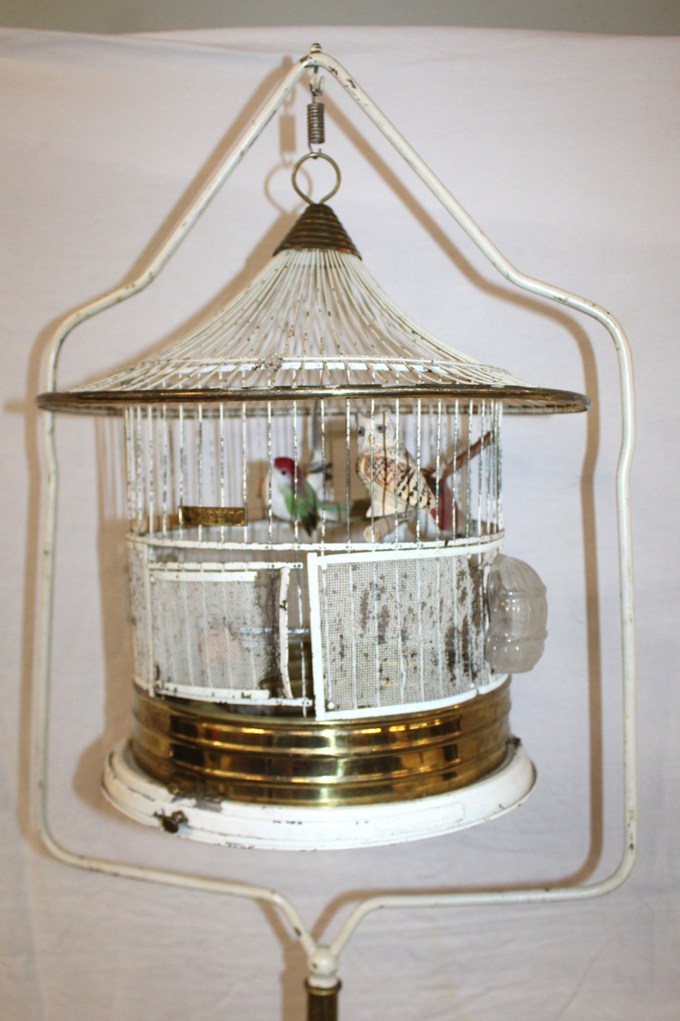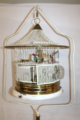Antique Hendrix Bird Cage On Floor Stand, Feeders, Waterers, 69H (81)
