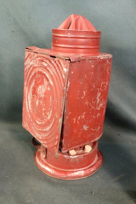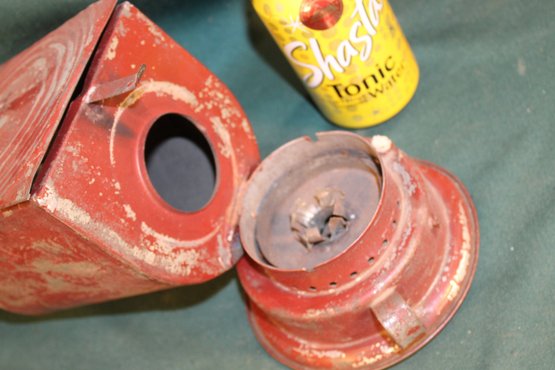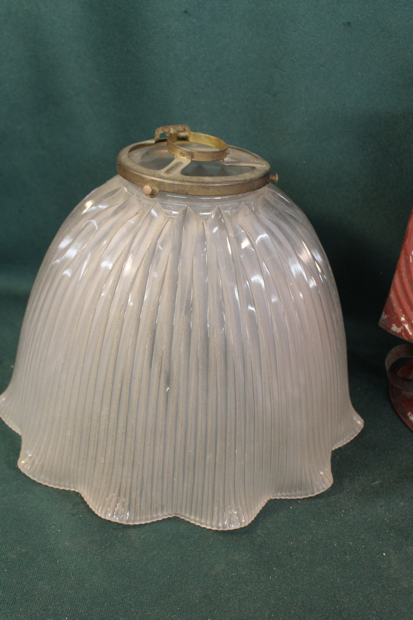 Antique Holophane Glass Lamp Shade 7"H 3/3" Opening & Antique Tin Lantern, 10"H (307)