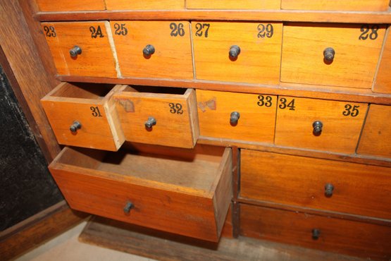 Antique Humphrey's Specifics, 34 Drawer Medicine Cabinet, 21x10x28"H (287)
