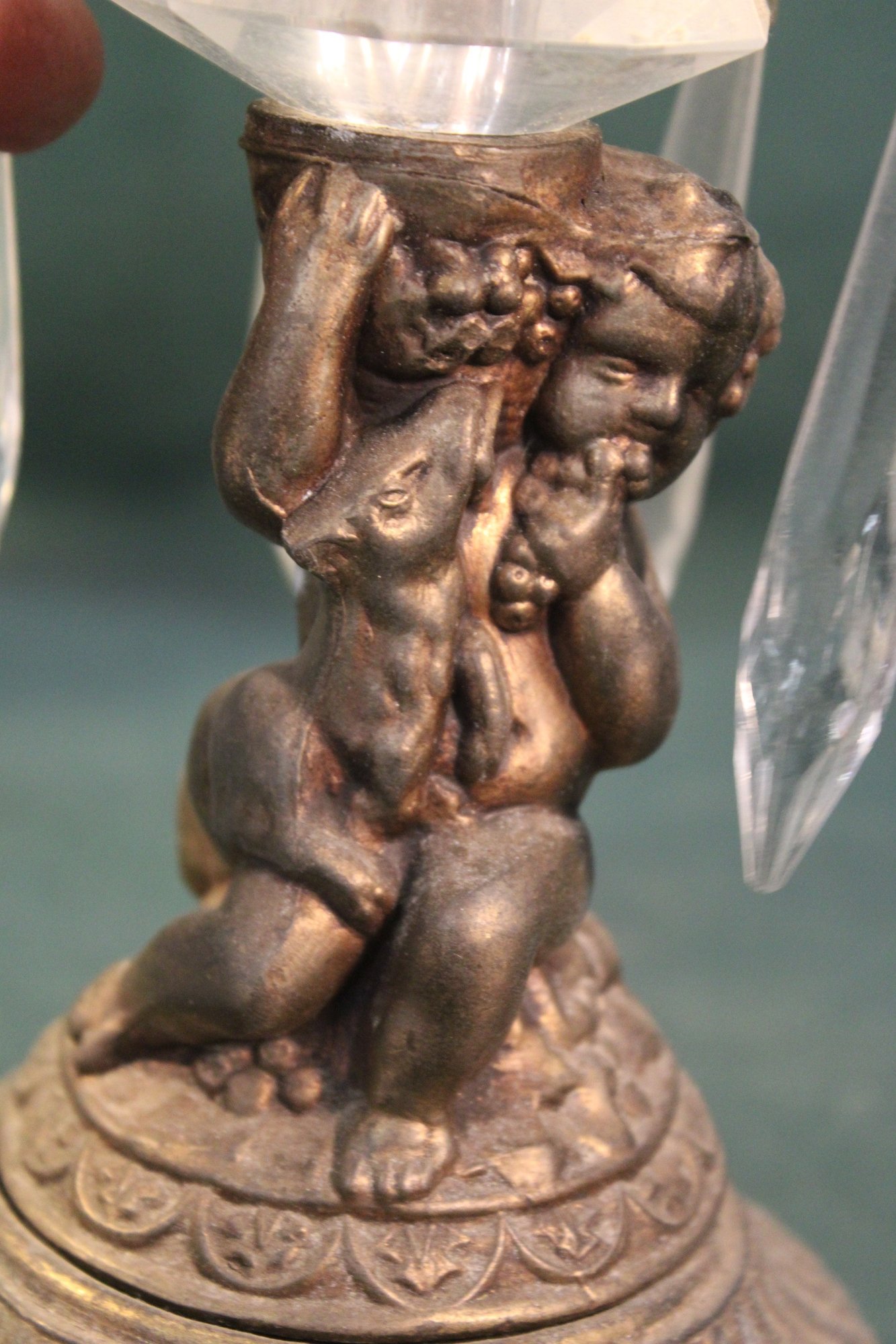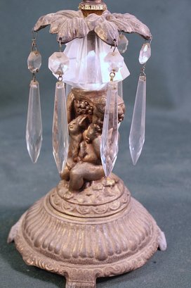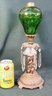 Antique Lamp Base W/Green Glass Font And Glass Prisms, No Burner, 15"H (386)