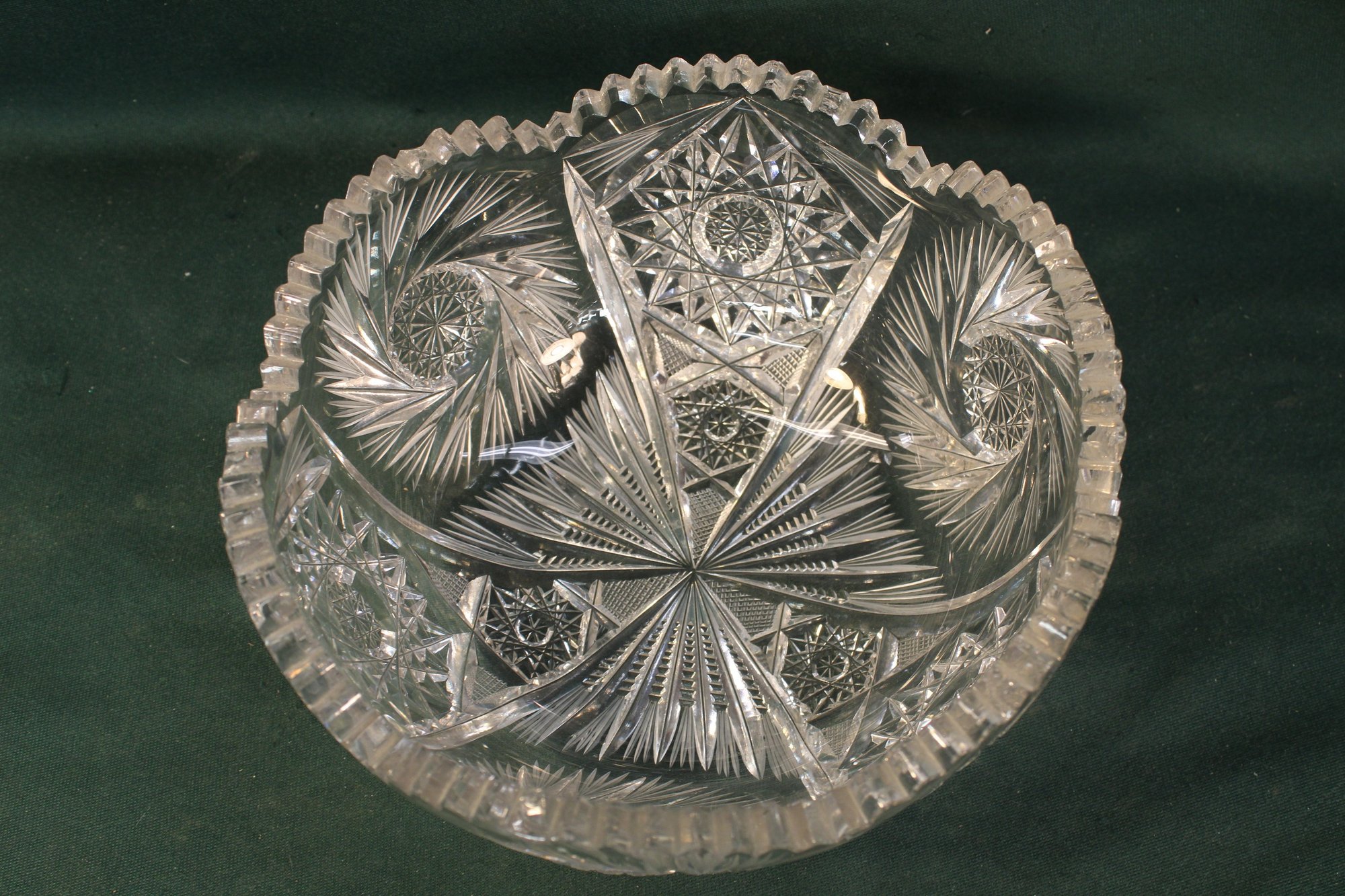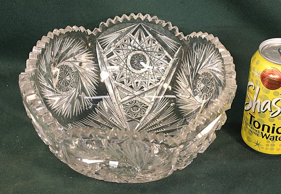 Antique Large Heavy 9"D X 4"H Clear Cut Lead Crystal Glass Bowl (306)
