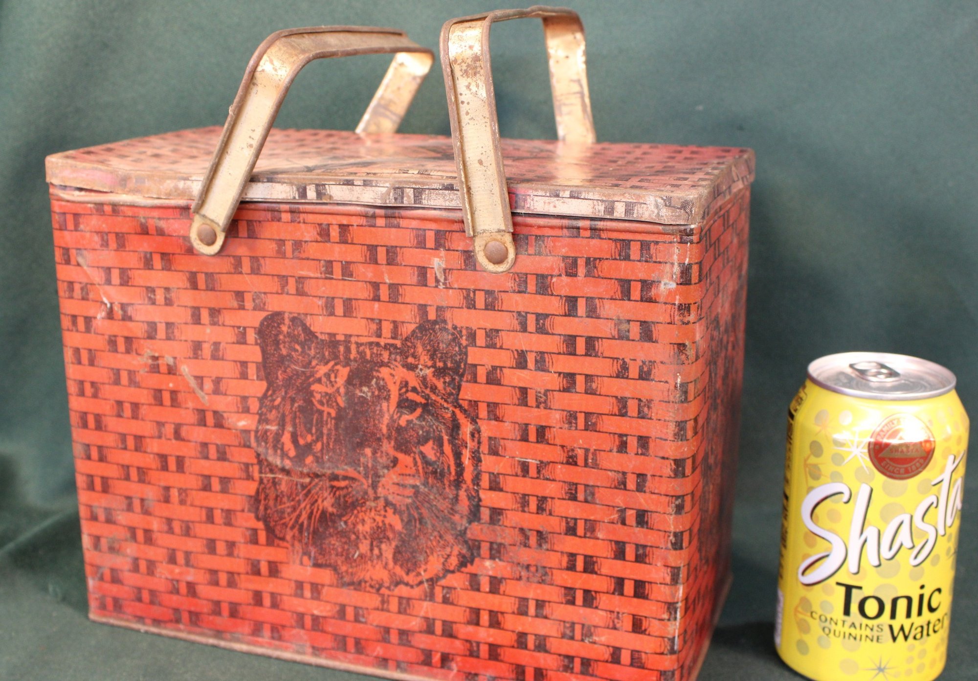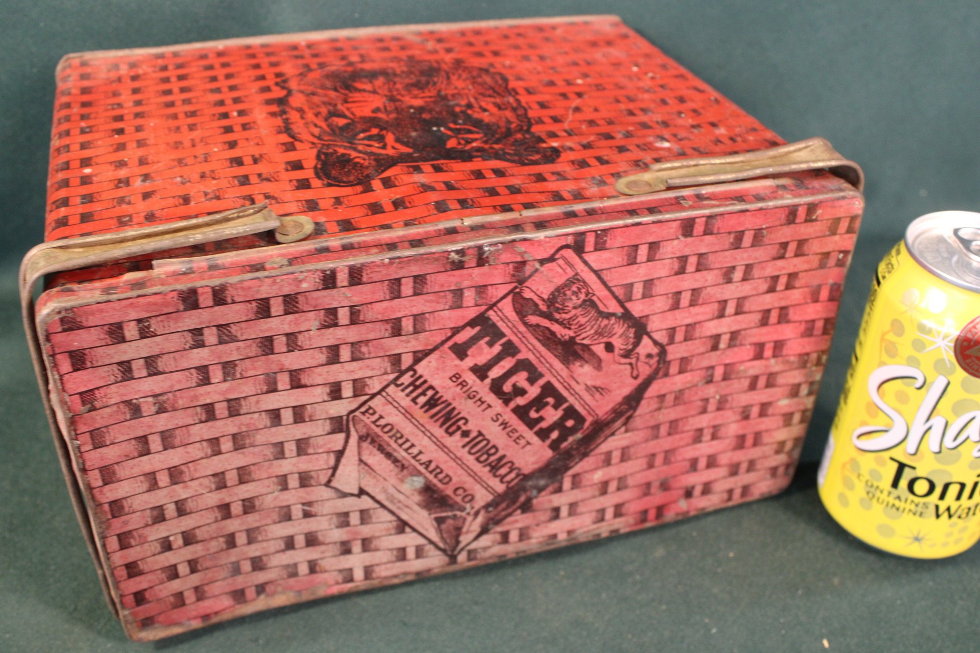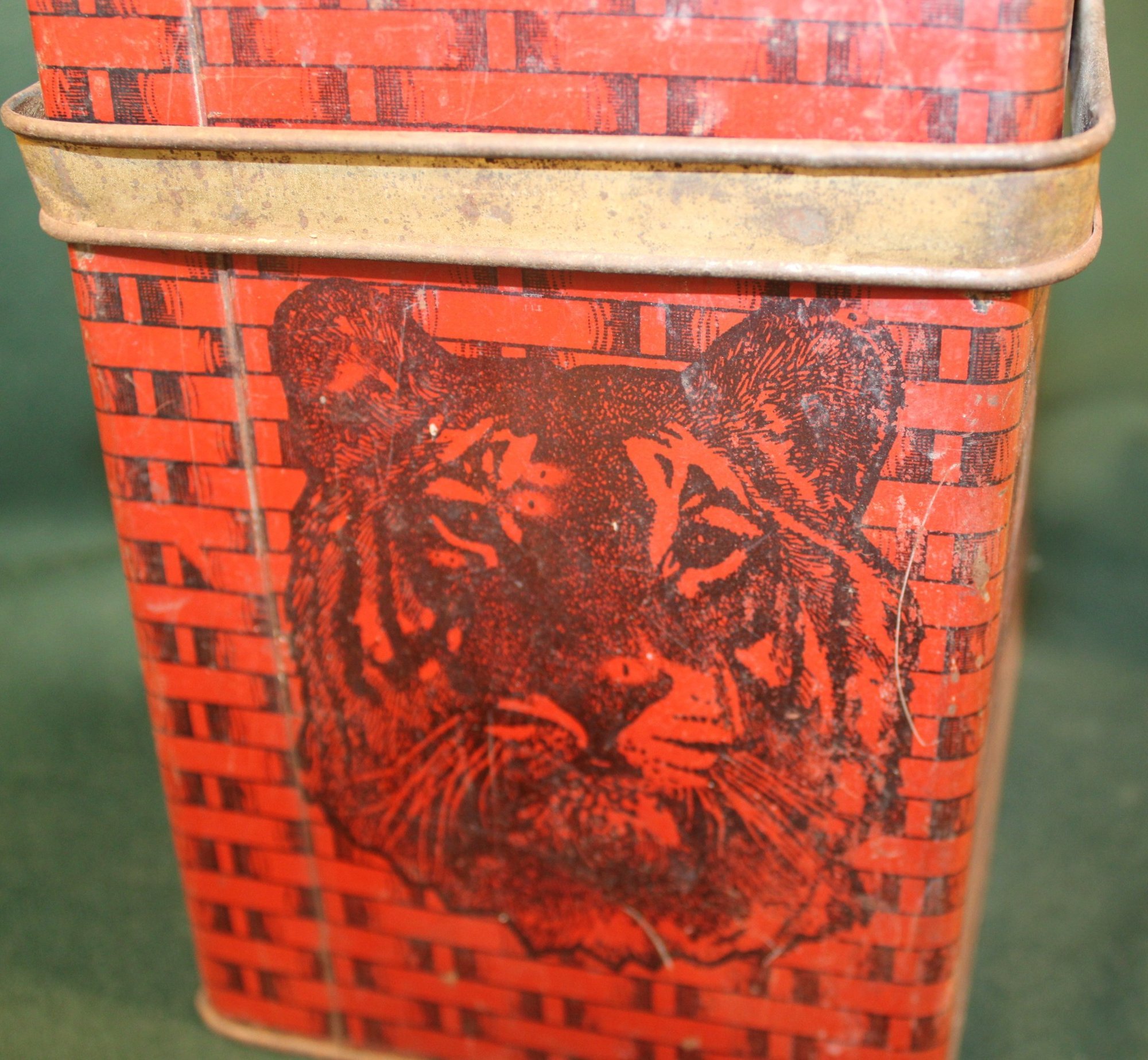 Antique Large Tiger Chewing Tobacco Tin W/Handle, 10x5x8"H (238)