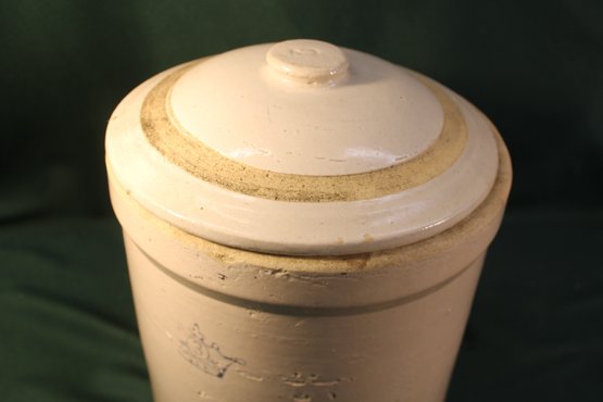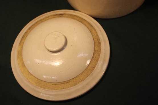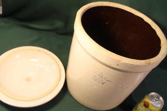 Antique Lidded Stoneware 3 Gallon USA Crock, 14"H (299)