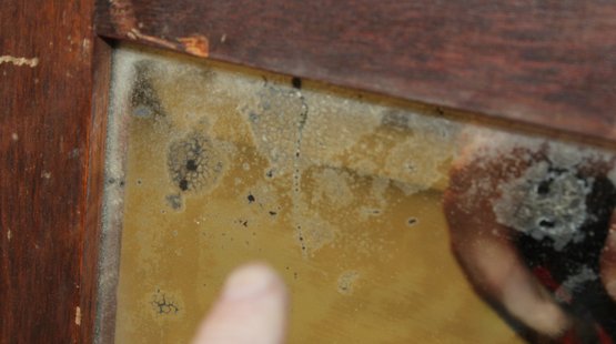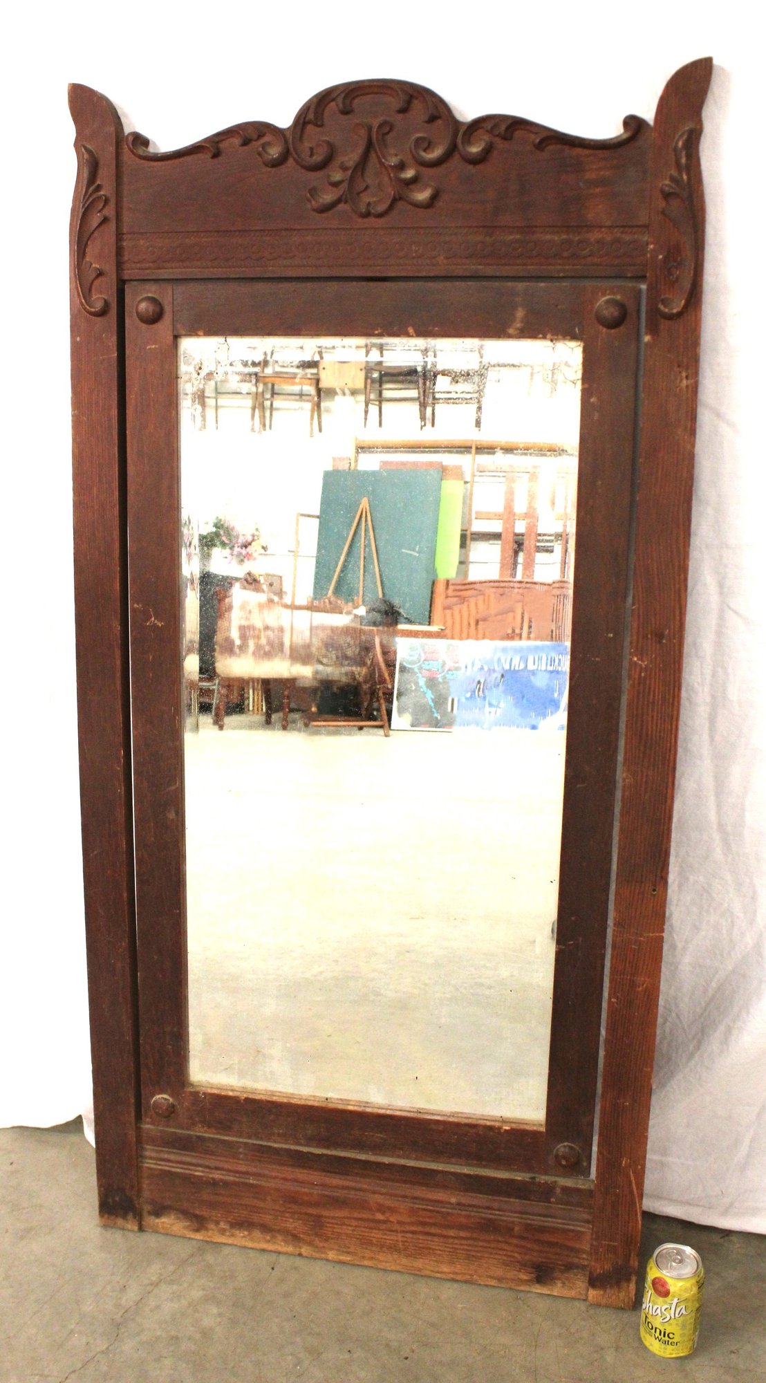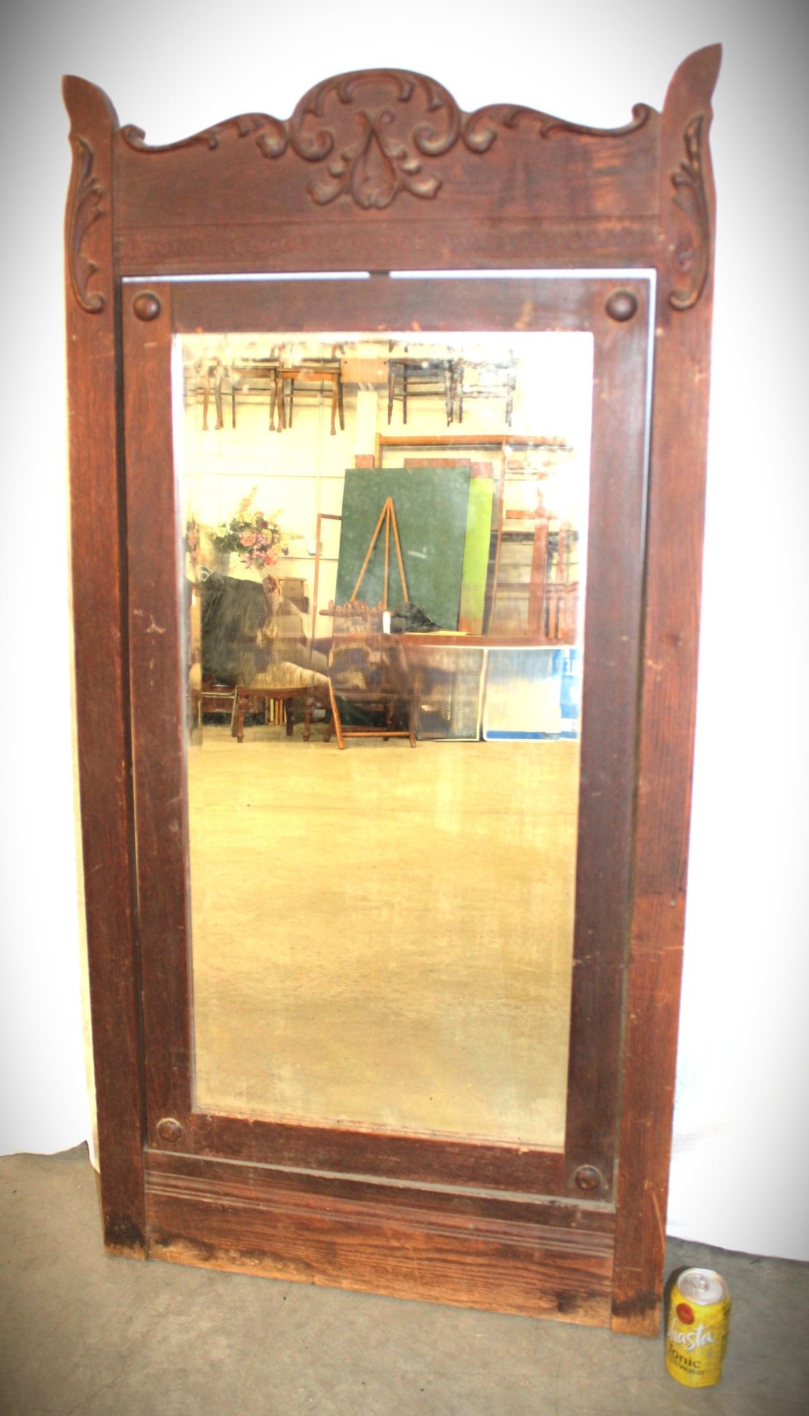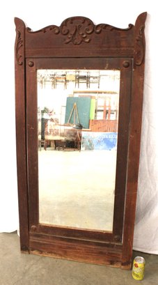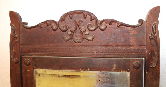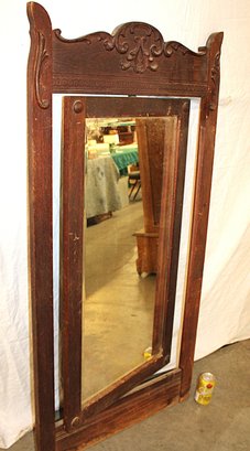 Antique Oak Carved Framed Swiveling Beveled Glass Mirror , 27x55"H (291)