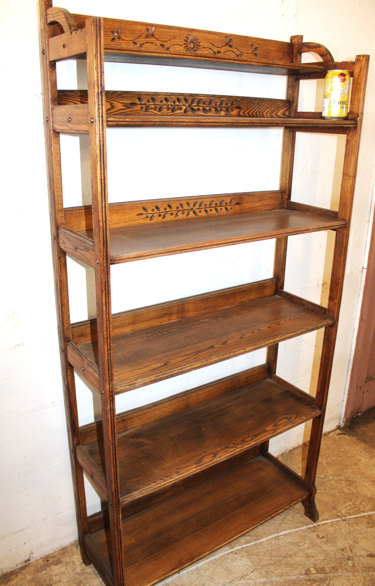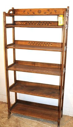Antique Oak Eastlake 5 Shelf Bookcase, Excellent Condition, 30x10x62"H (258)