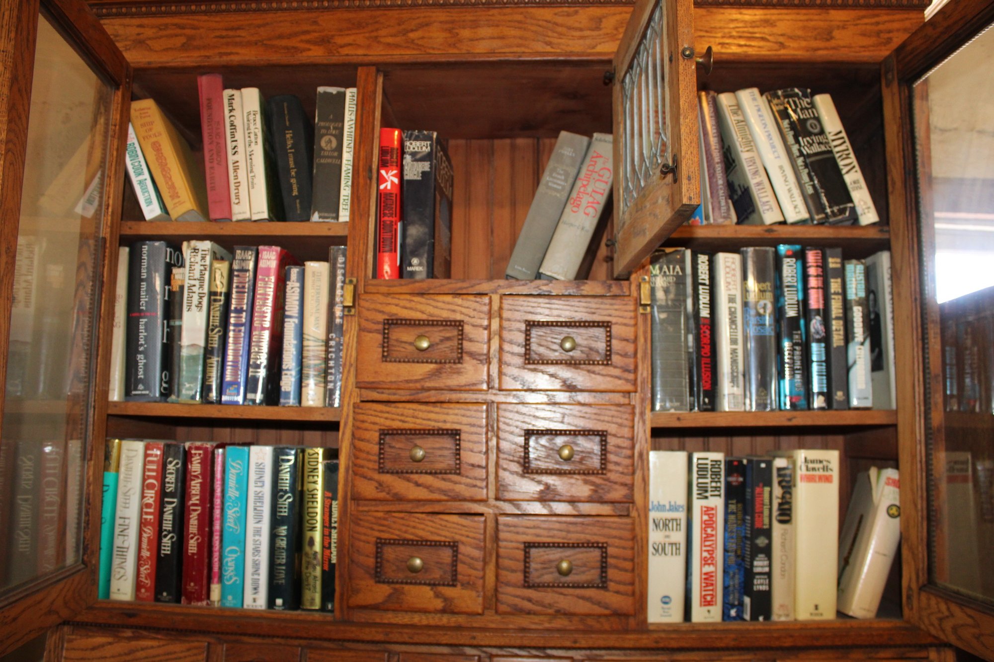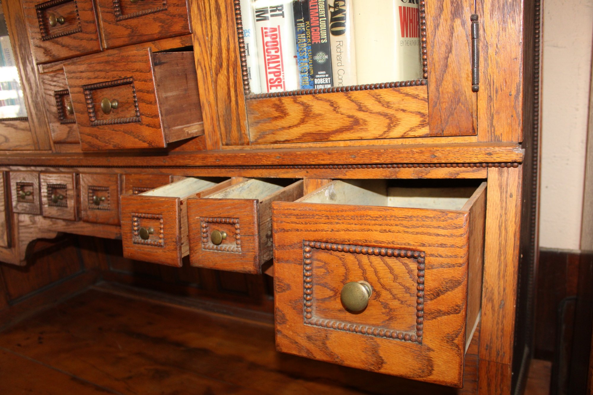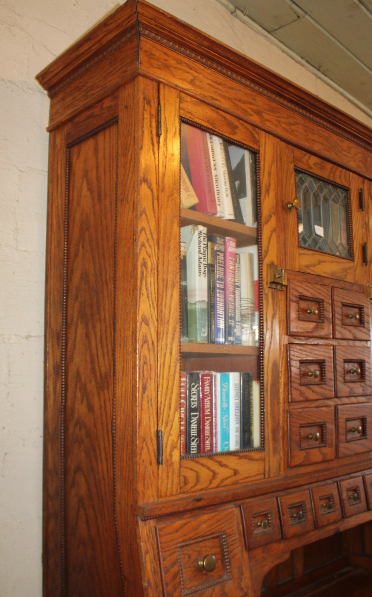 Beaded & Egg & Dart Trim, All Complete Original Hardware. A highly unusual, one of a kind cabinet in excellent original condition. Books not included.