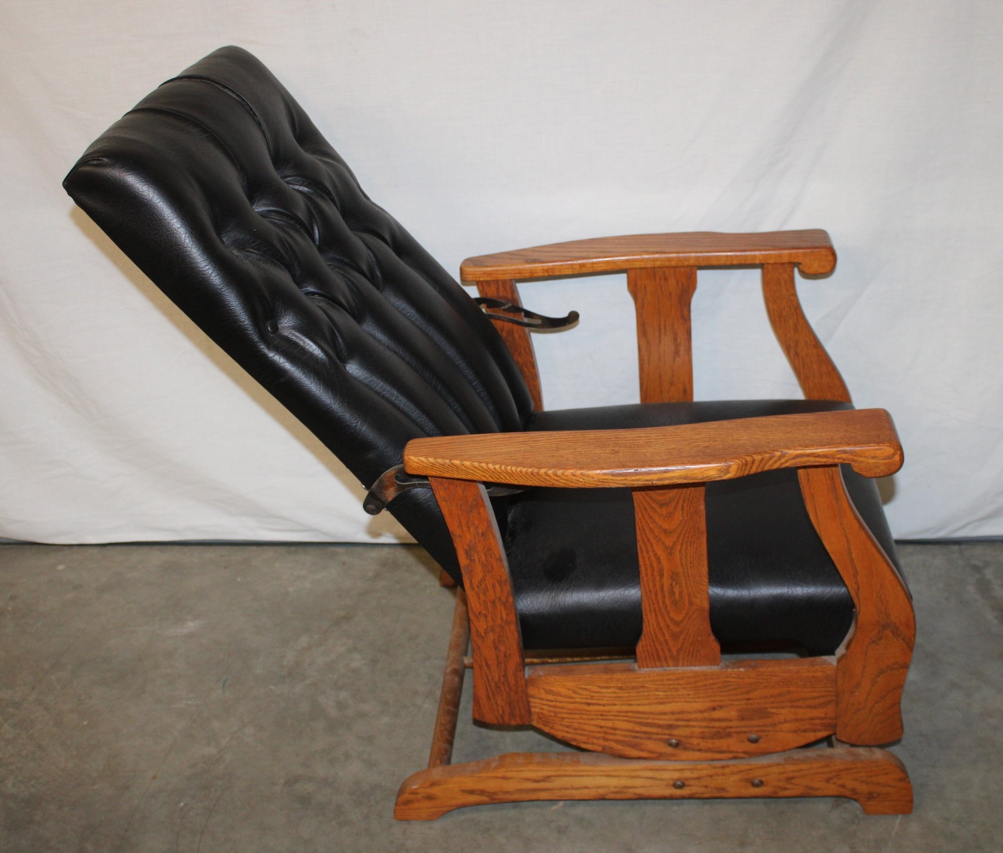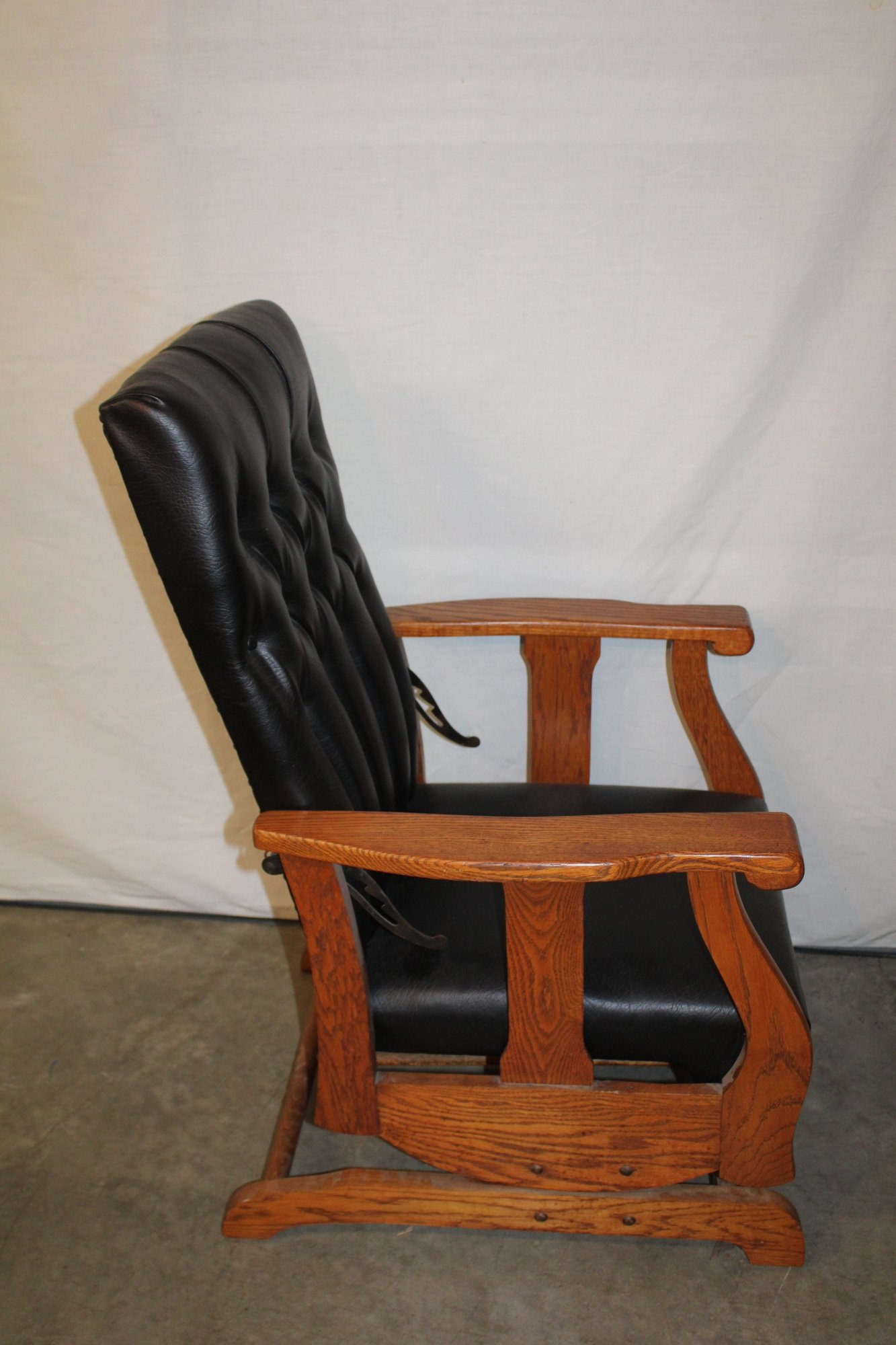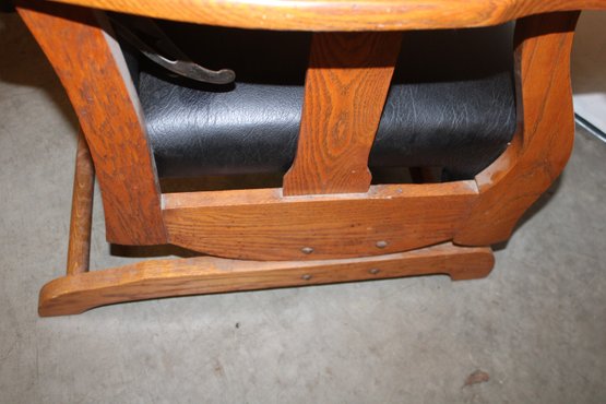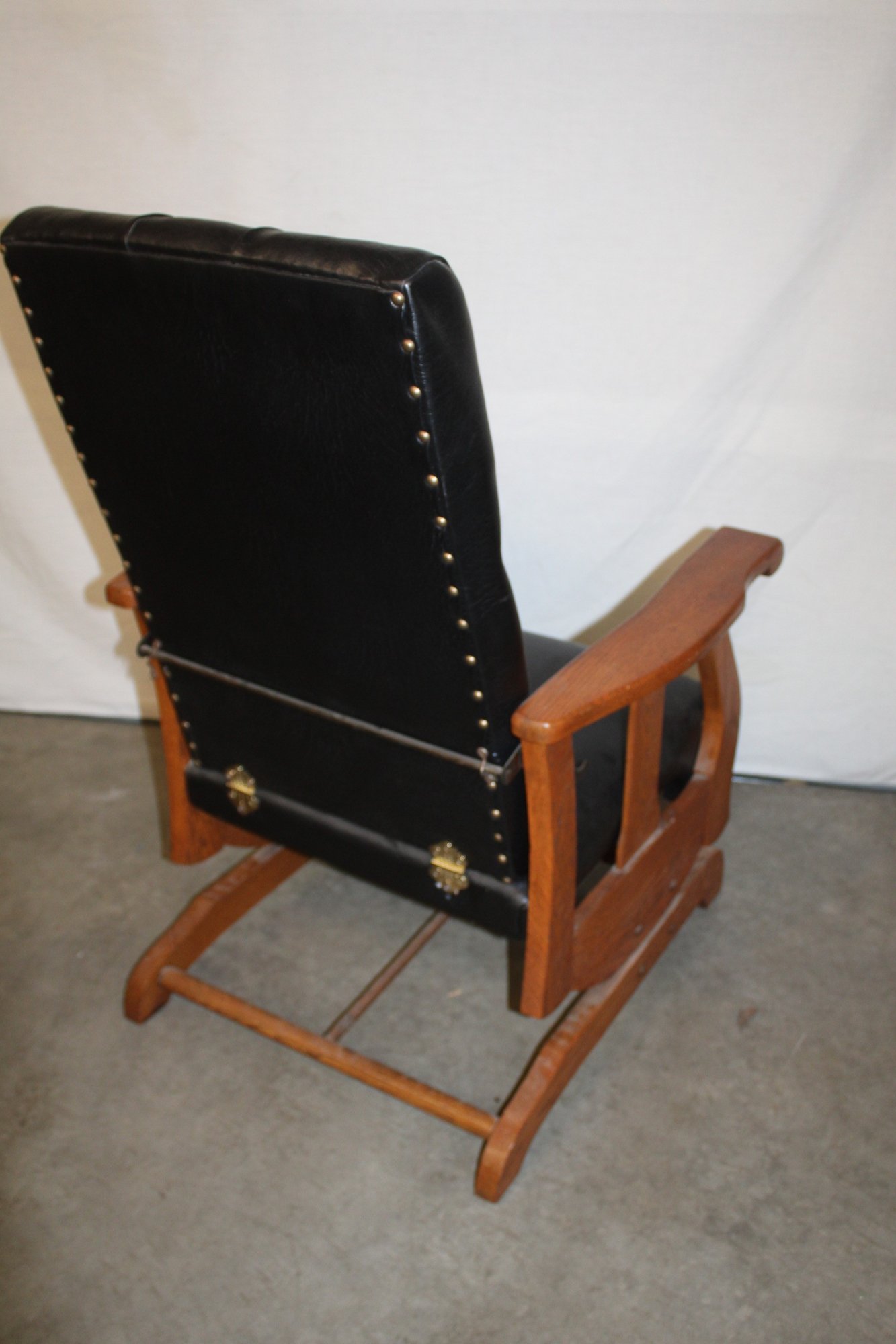 Antique Oak Reclining Morris Upholstered Platform Arm Rocker, 27x28x39"H (282)