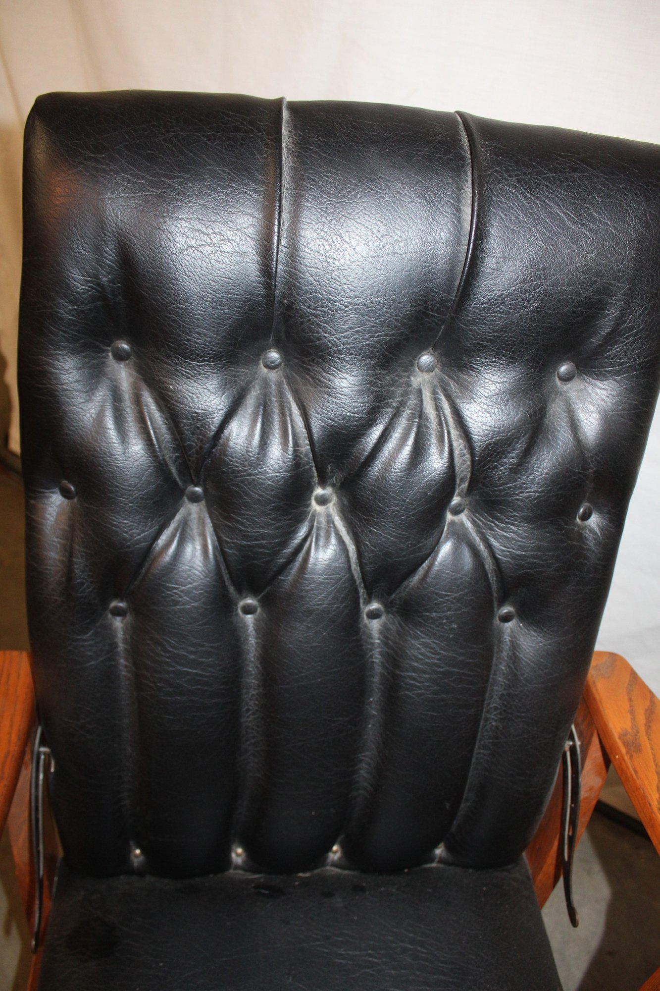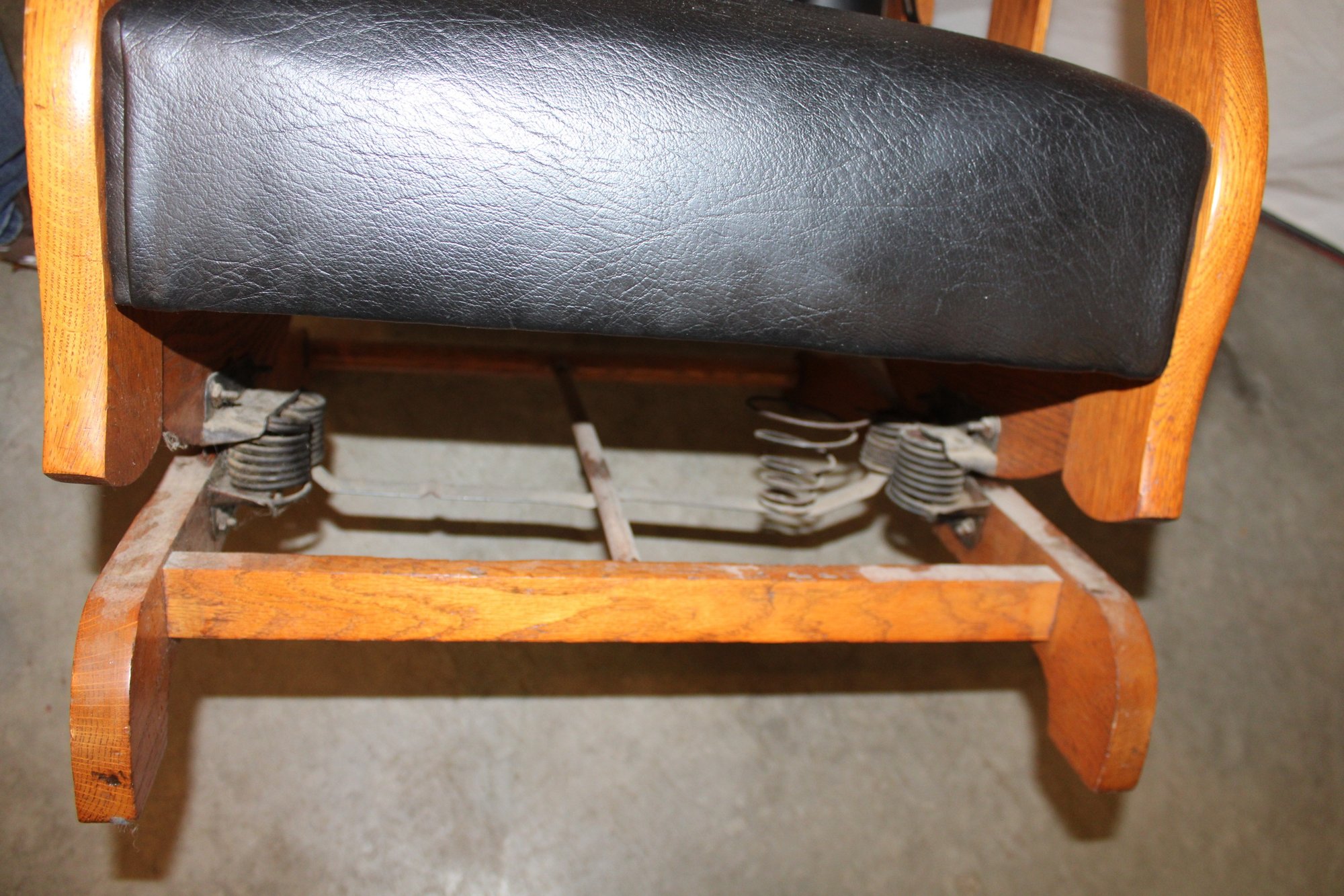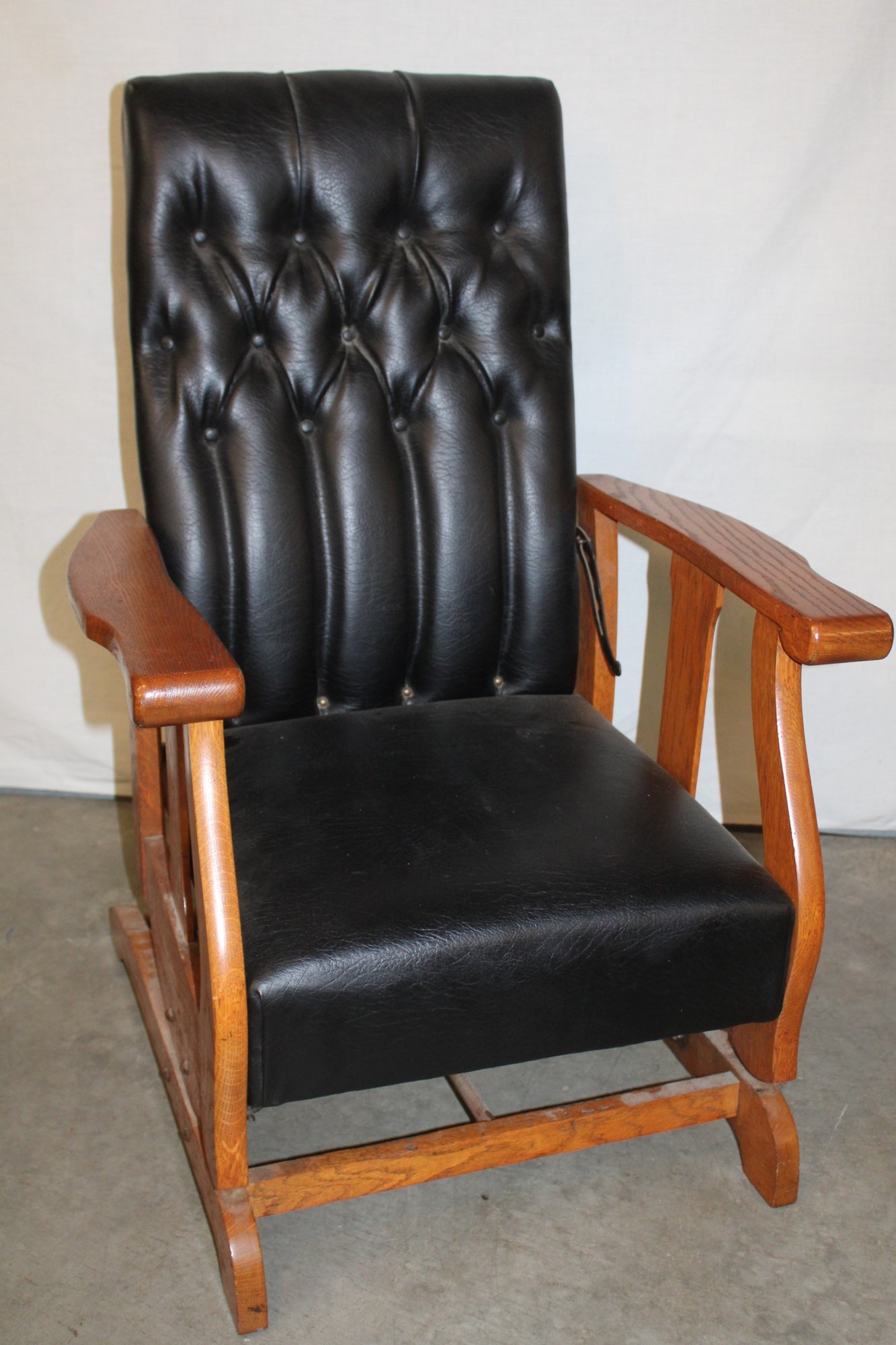 Antique Oak Reclining Morris Upholstered Platform Arm Rocker, 27x28x39"H (282)