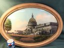 Antique Oval Framed Reverse Painting Of US Capital On Convex Glass, 22x16" (340)