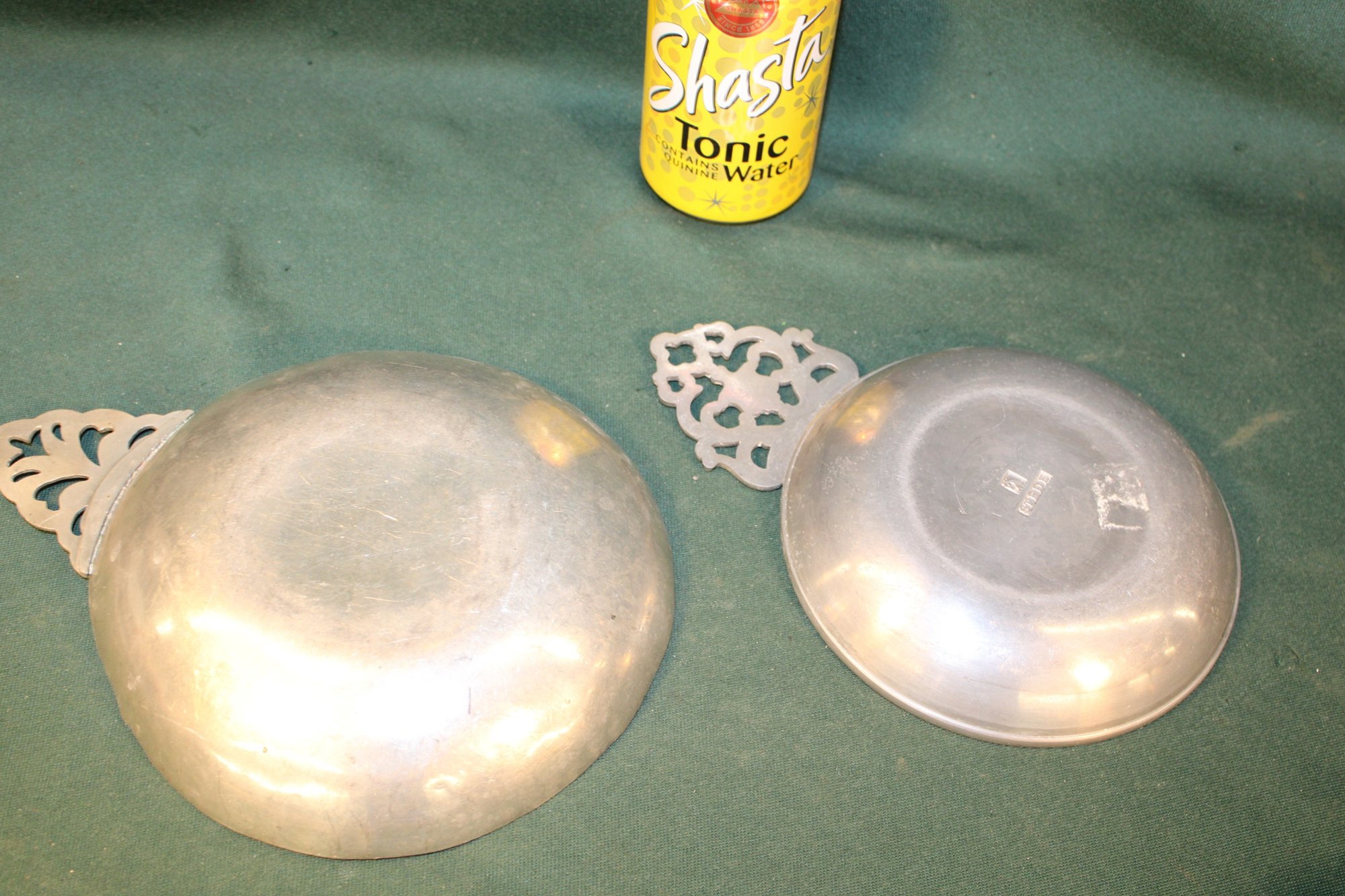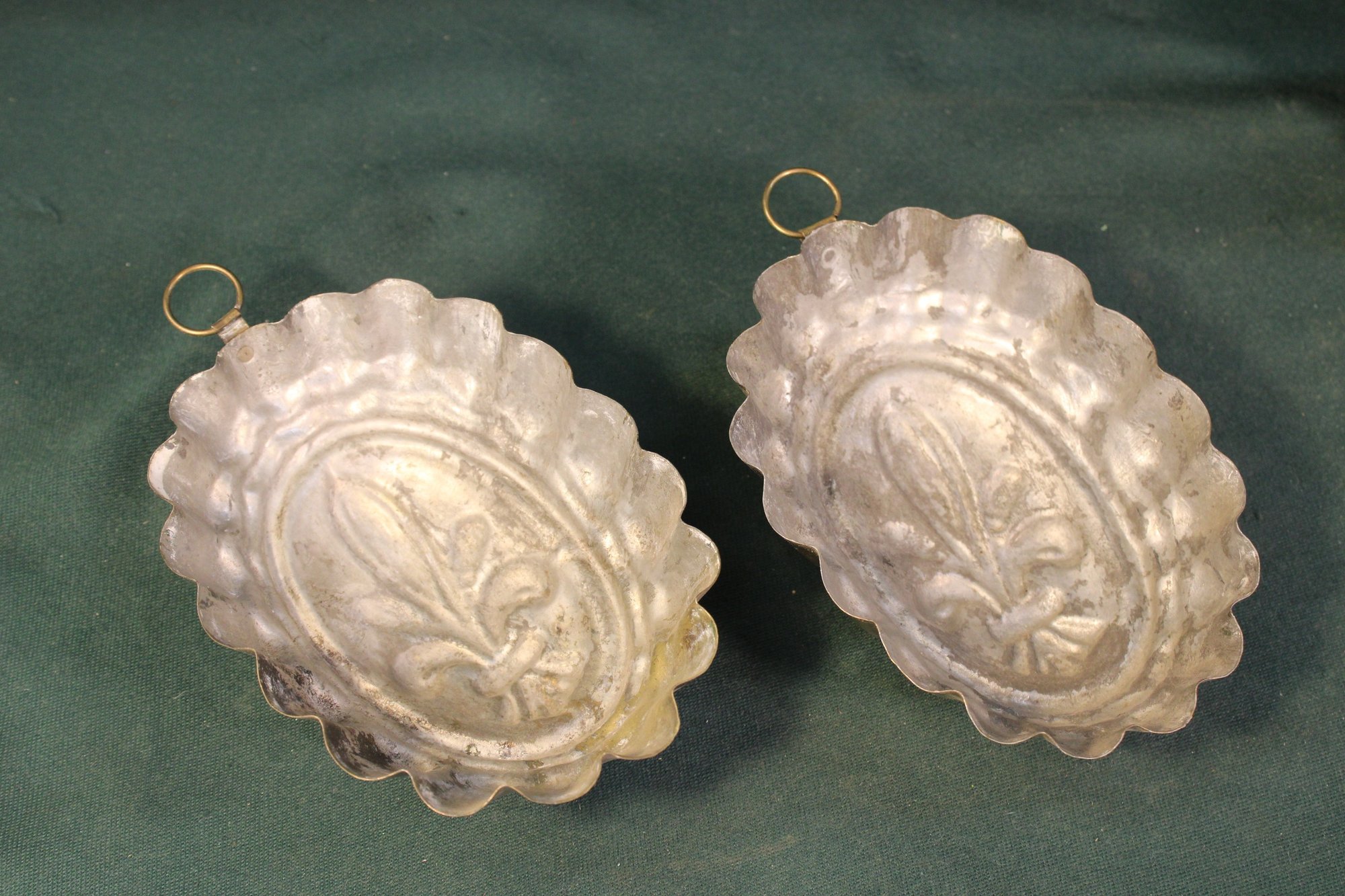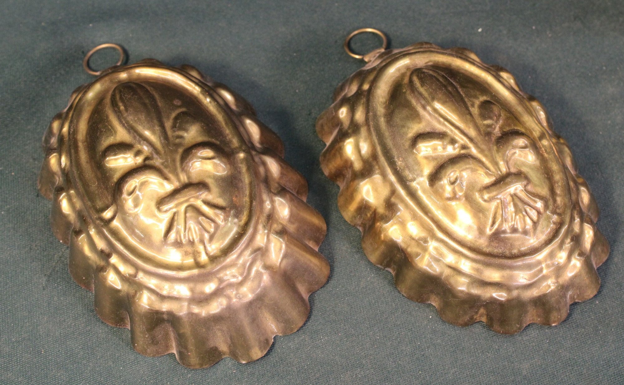 Antique Pair Brass Molds & 2 Pewter Serving Plates (343)