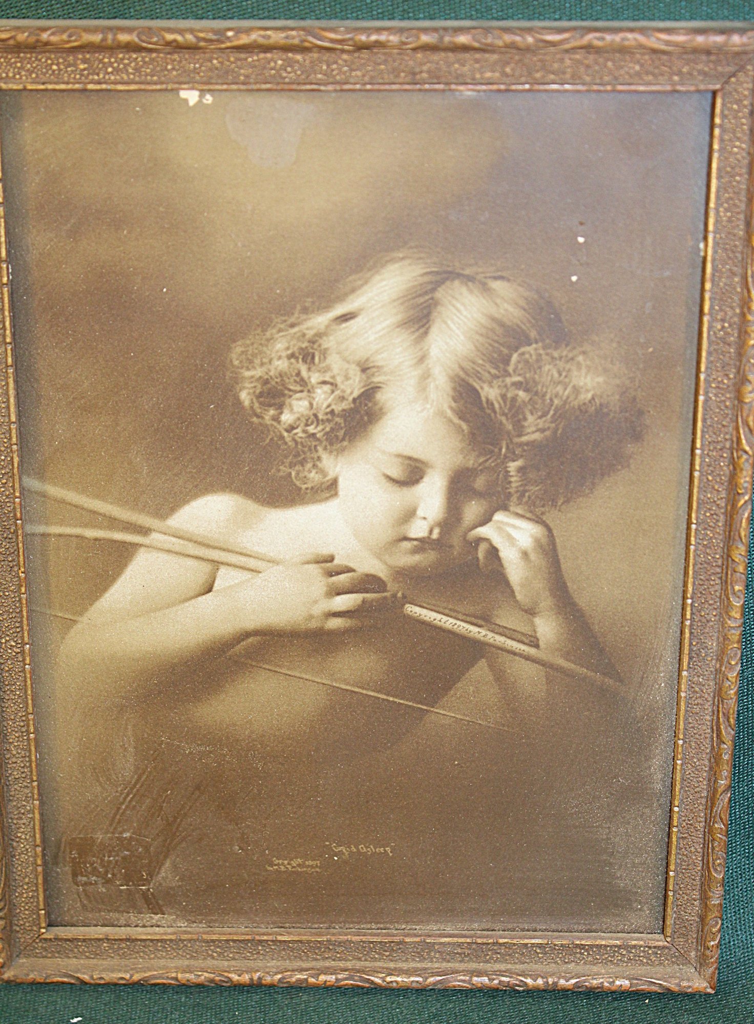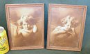 Antique Pair Framed Prints - "Cupid Awake" & "Cupid Asleep", 1897, 6.5x9"H (373)