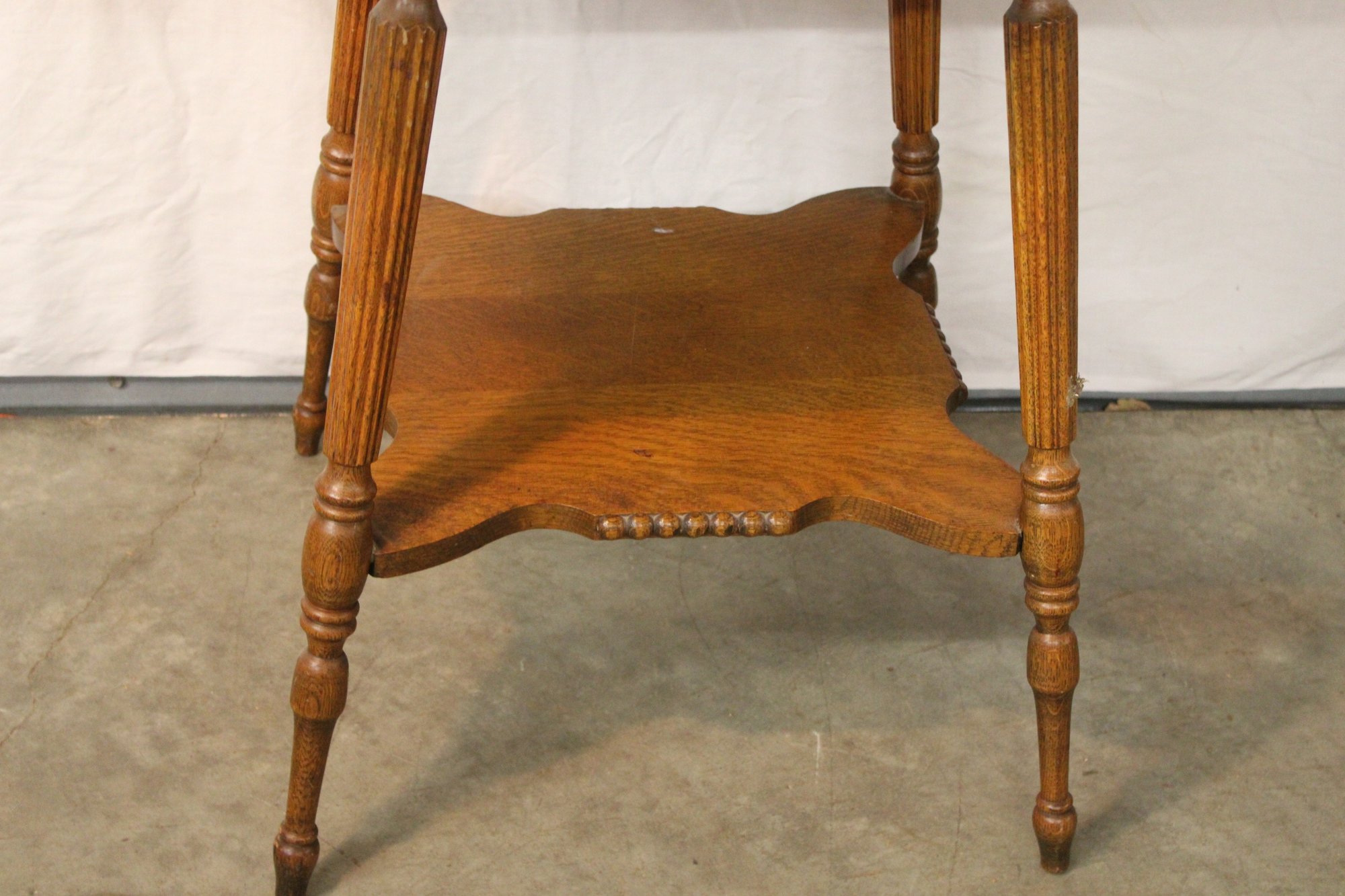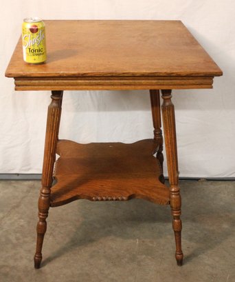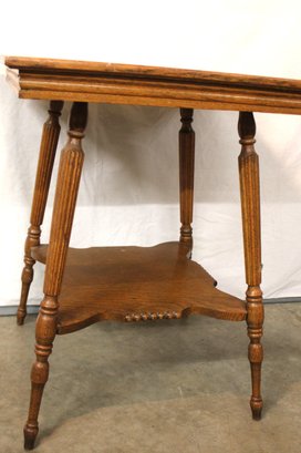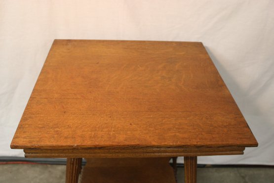 Antique Quartersawn Oak Parlor Table W/ Fluted&Turned Legs, 24x24x30"H (281)