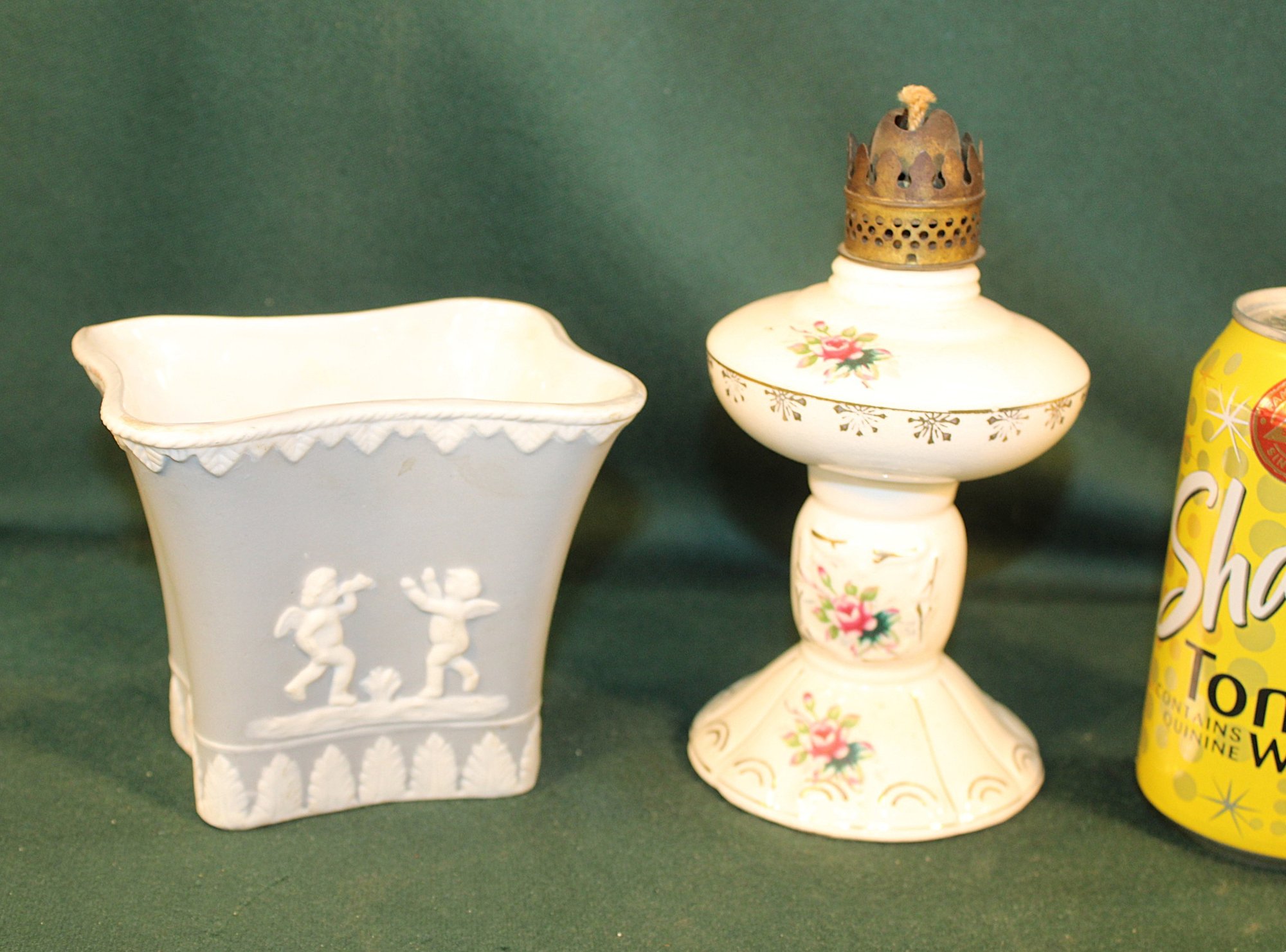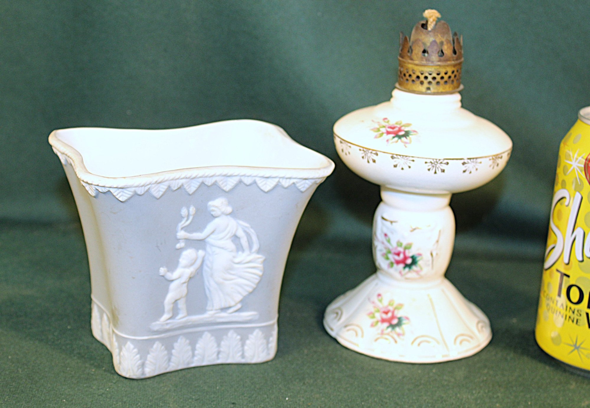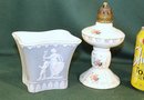Antique Wedgewood(?) Vase & Small Oil Lamp (Burner Not Attached) (293)