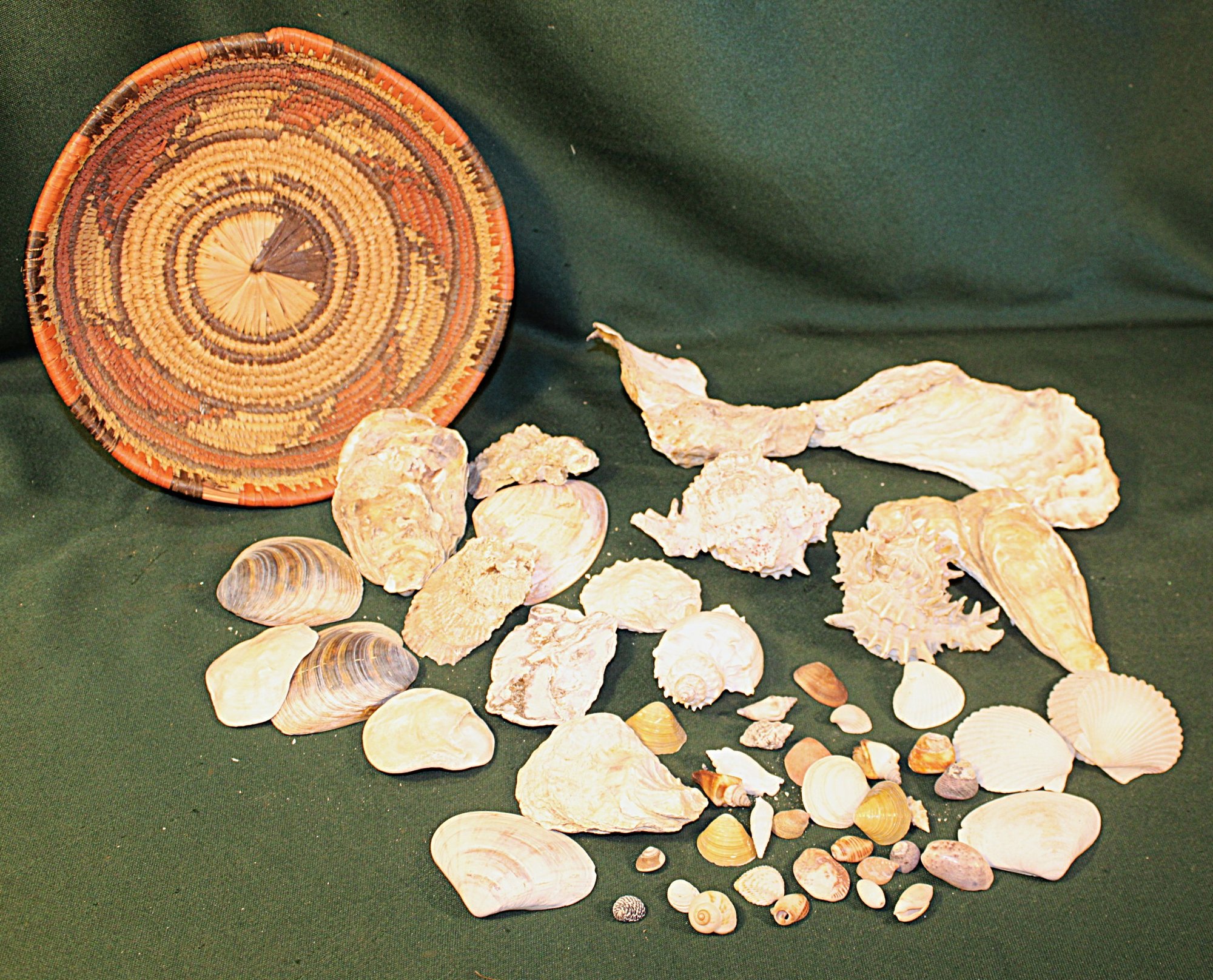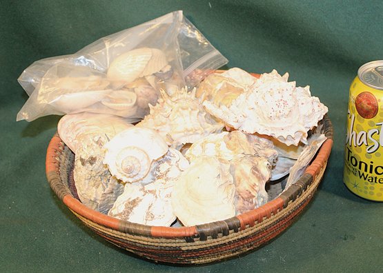 Assorted Sea Shells In 10"D Coiled Ethnic Basket (170)