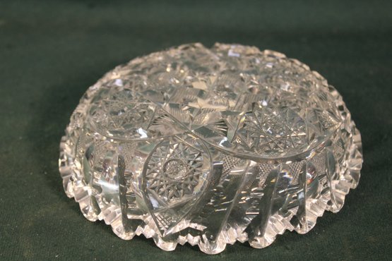 Beautiful Antique Clear Cut Lead Crystal Glass Signed Libby Bowl, 6"D (304)