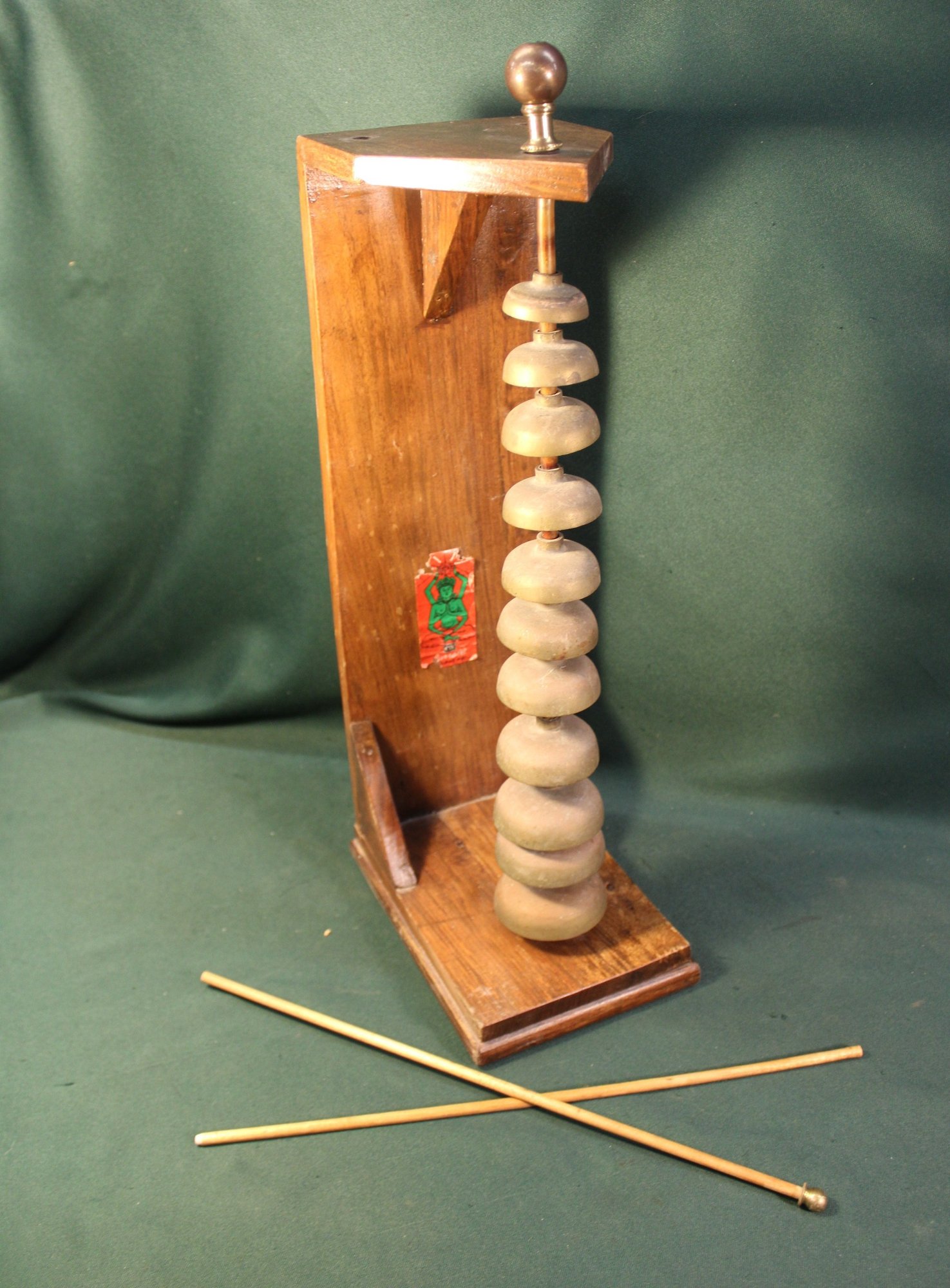 Bell Tree Instrument W/ 2 Sticks, (1 Missing Brass Knob), 6x9x23"H (296)