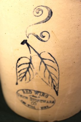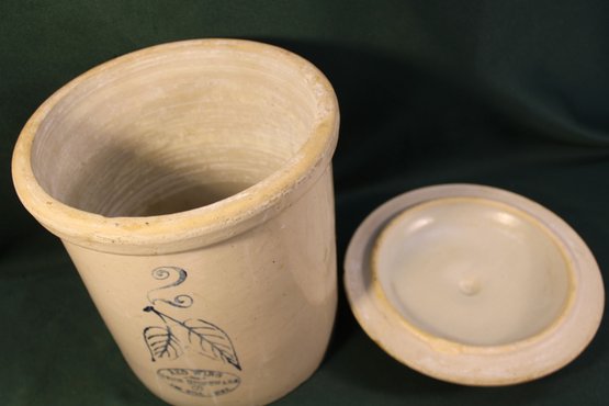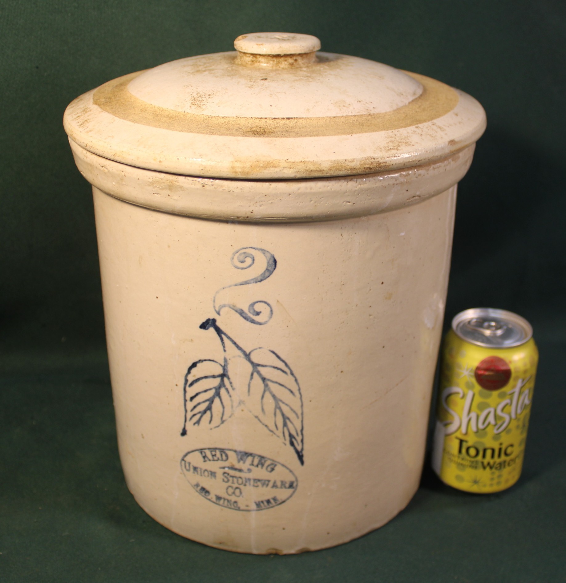 Early 2 Gallon Red Wing Union Stoneware Co Crock W/Lid, 11"H (Chips On Lid) (297)