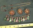 Necklace, Jade (?) Bracelet & Earring/Pendant Set (Missing Stones In Earrings) (34)